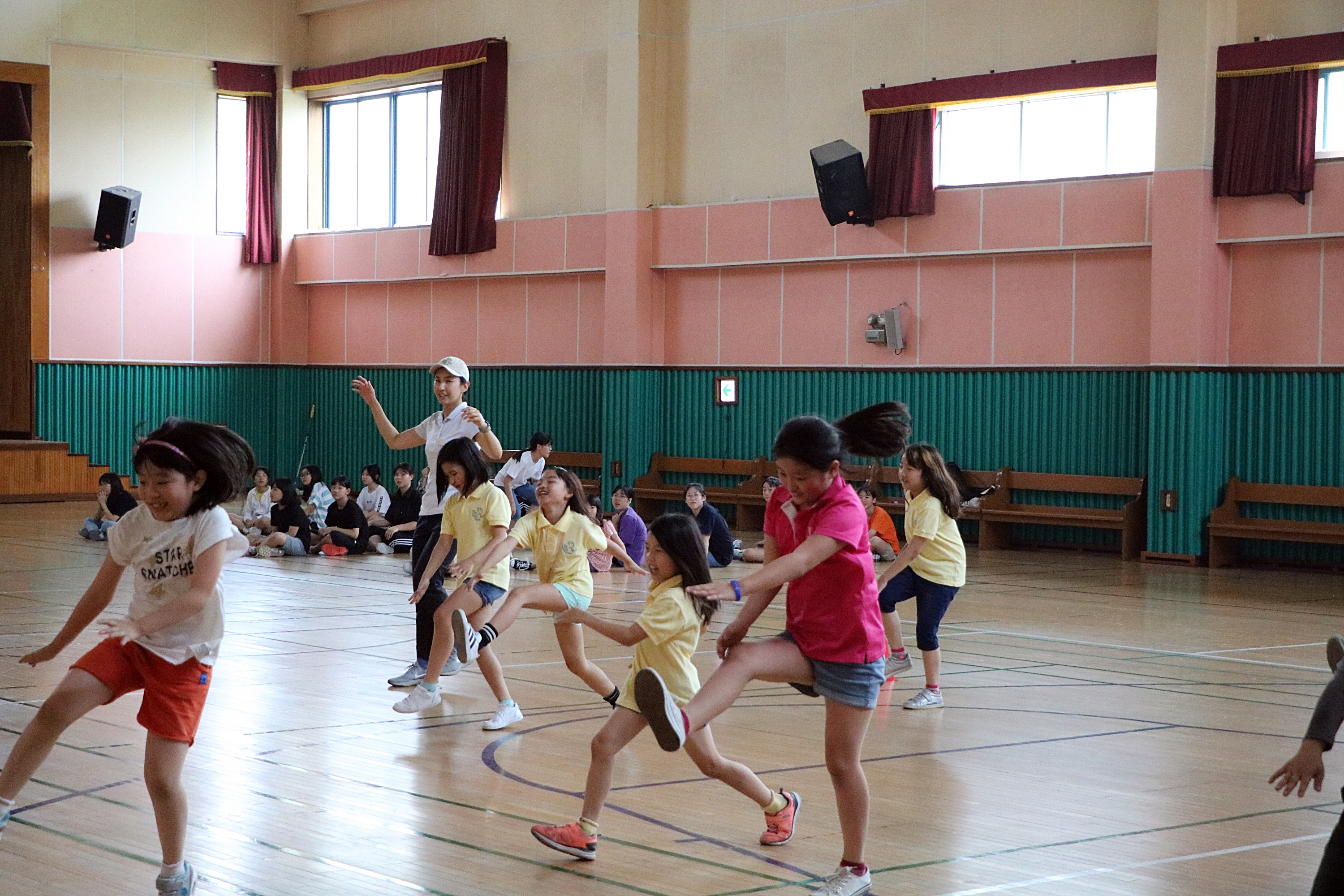 몬스터워크를 하며 가볍게 몸을 풀고 있는 아이들