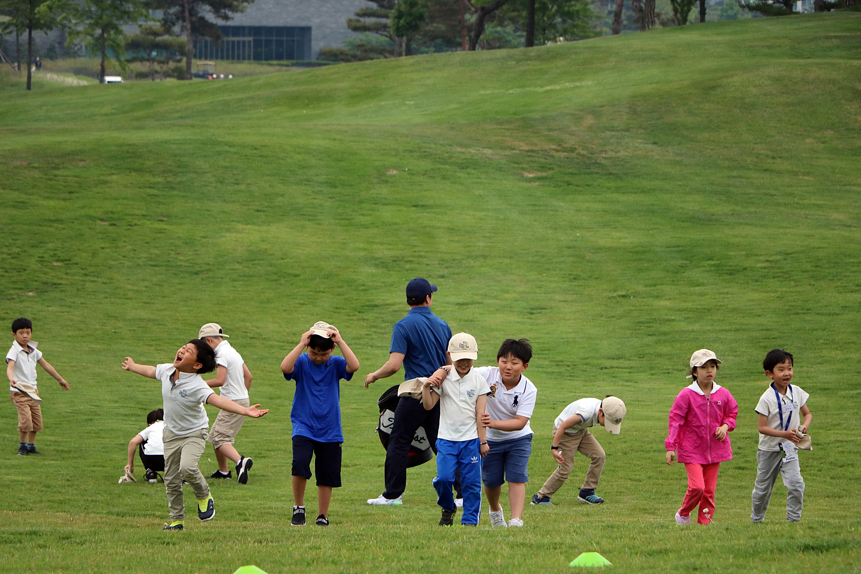 코치님을 도와 즐겁게 자신이 사용한 볼을 수거하고 있는 모습