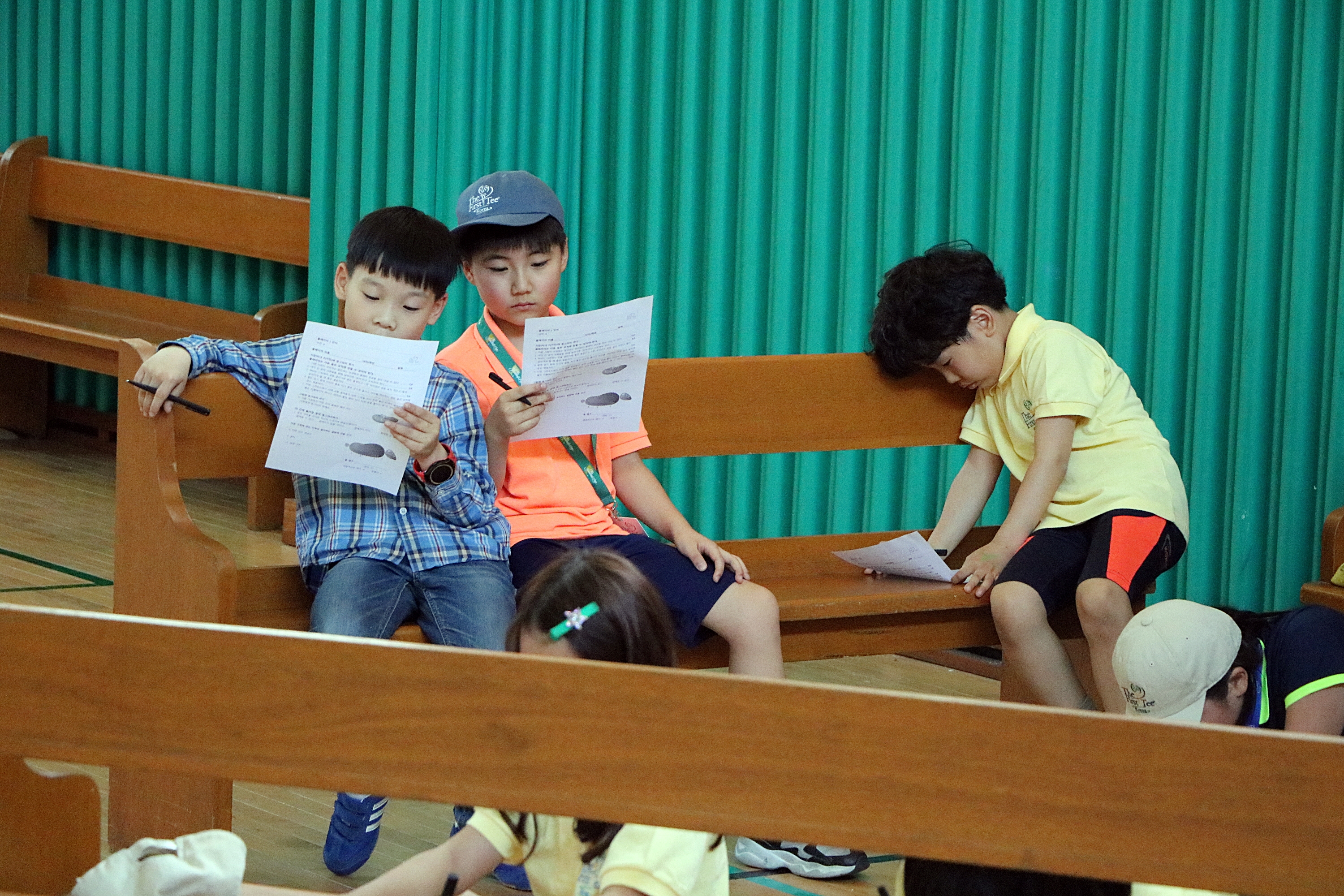 그동안 배운 지식을 토대로 신중하게 예상문제를 풀고 있는 아이들