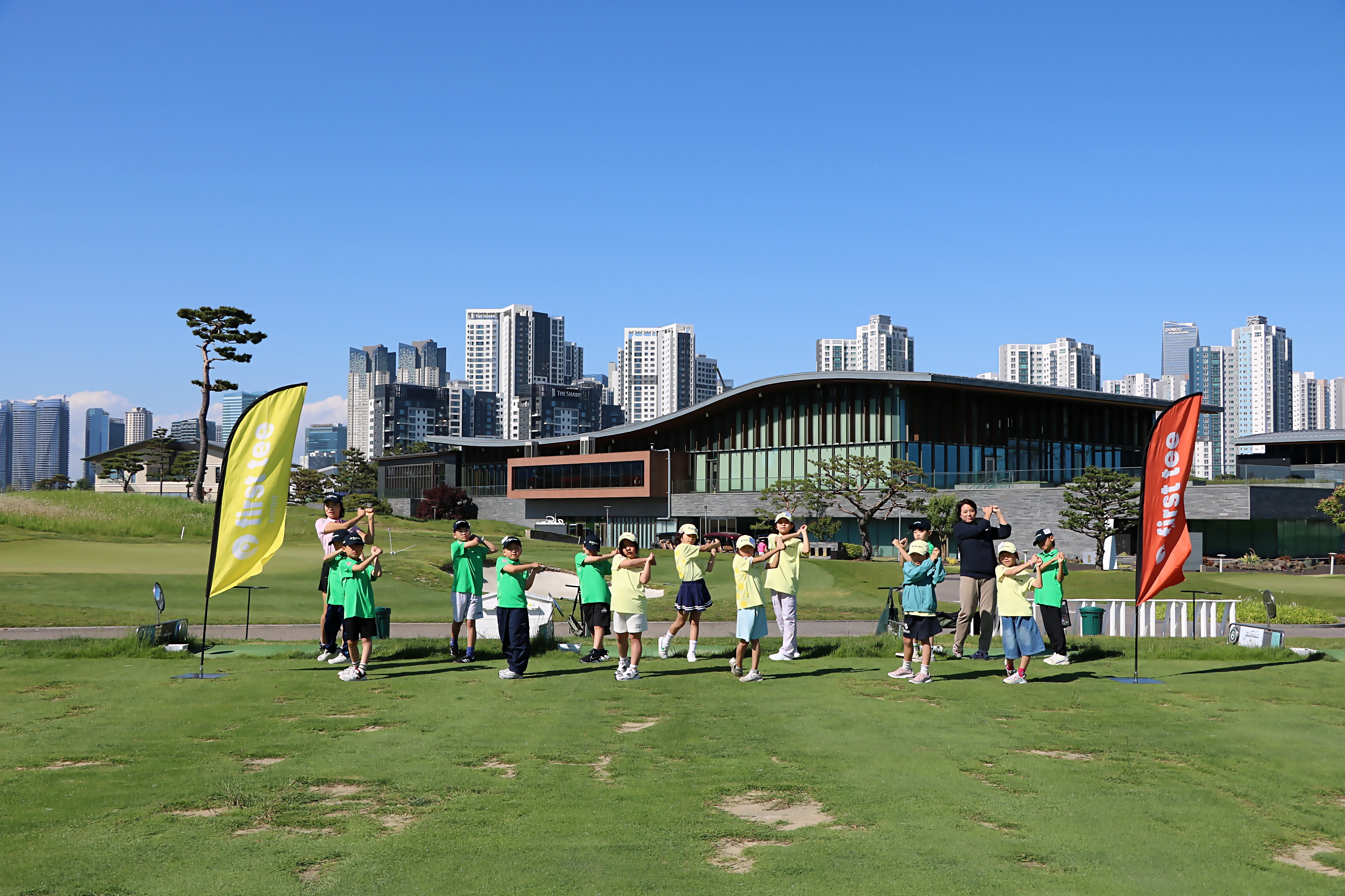 단체로 어드레스 동작과 피니쉬 동작을 취하며 잭니에서의 소중한 추억을 가슴에 새기고 있다.