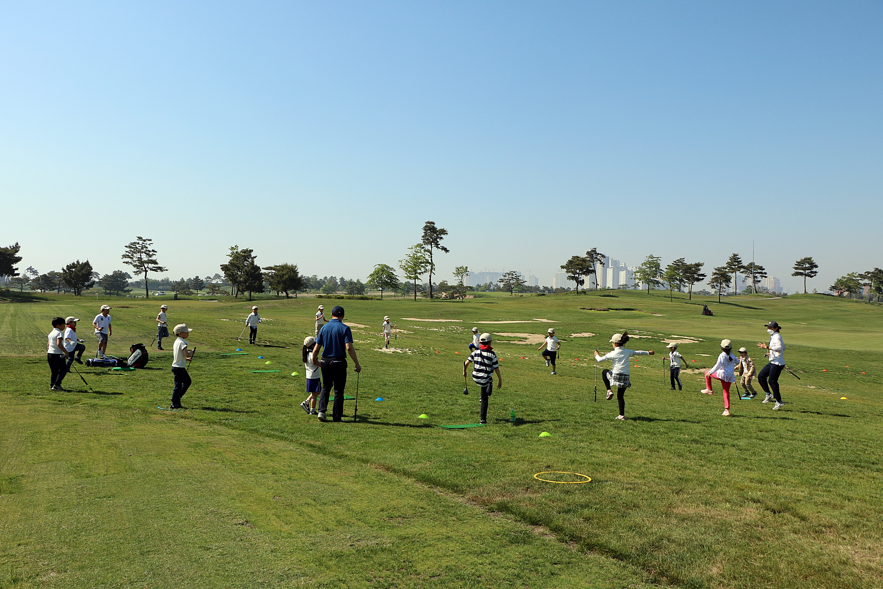코치님의 구령에 맞춰 제자리 달리기를 하며 몸풀기를 하고 있는 아이들
