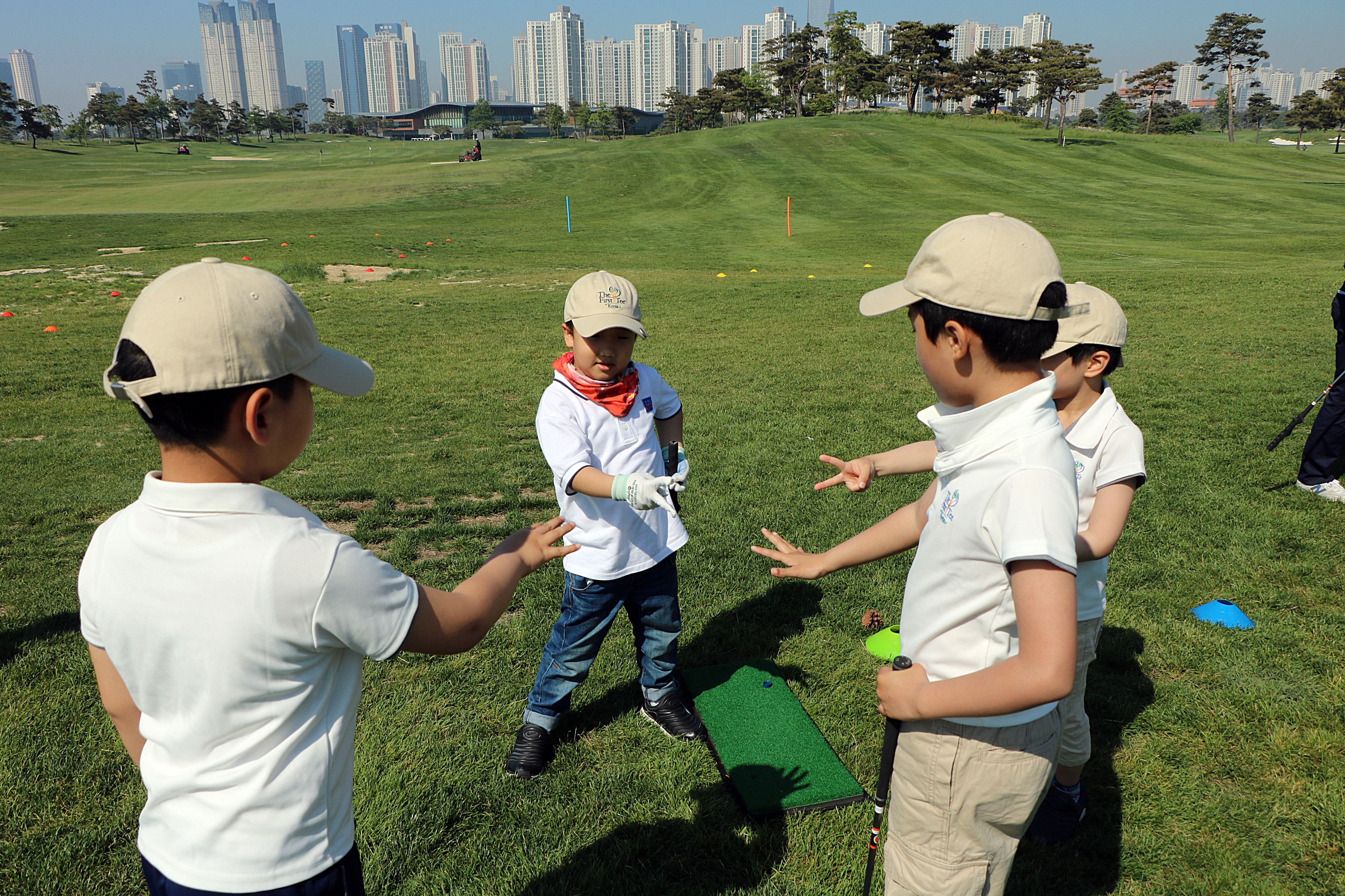 조편성이 이뤄진 뒤 본격적인 골프실습을 하기 위해 오너를 정하고 있는 모습