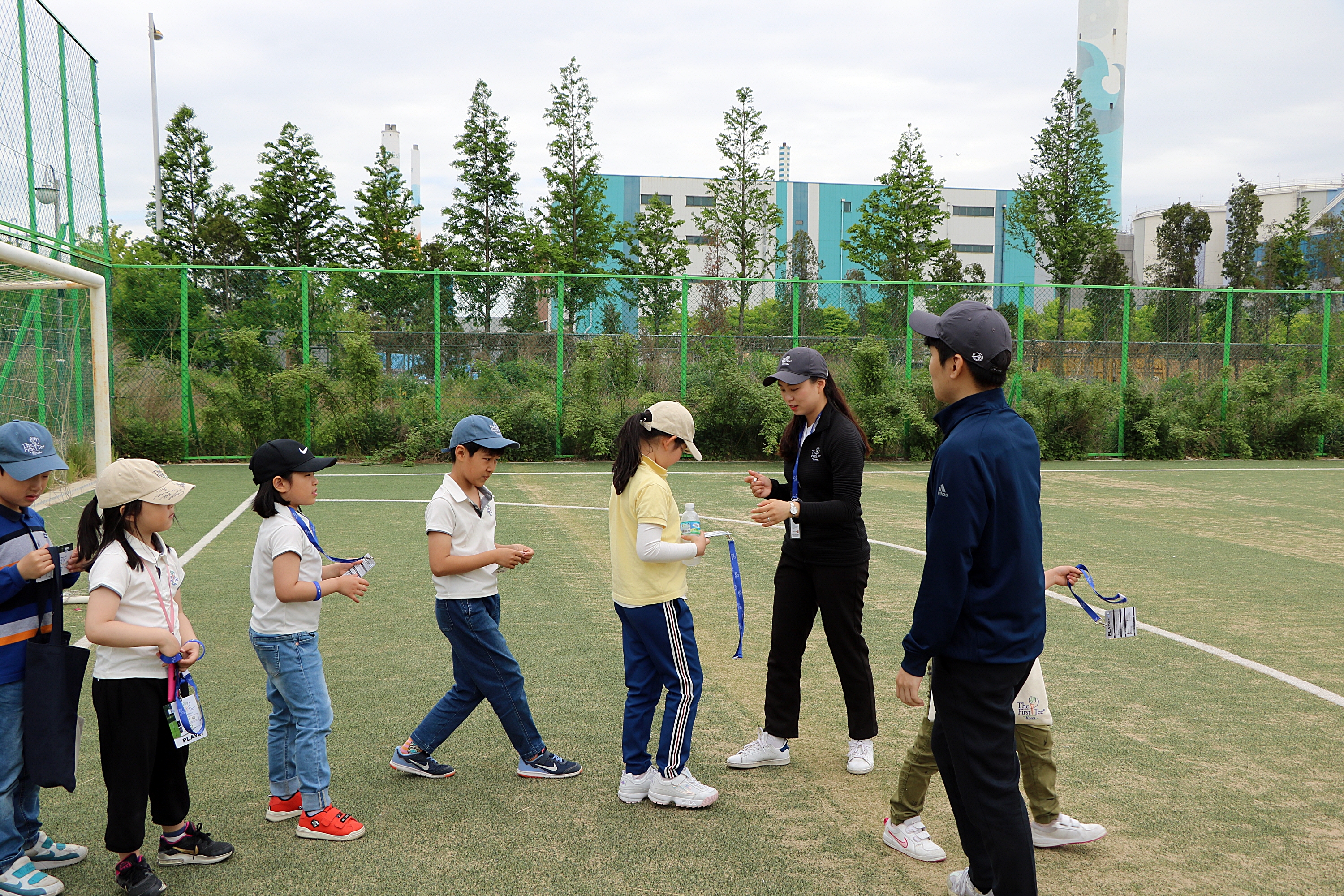 아이들과 일문일답을 하며 백텍에 확인을 해주고 있는 모습