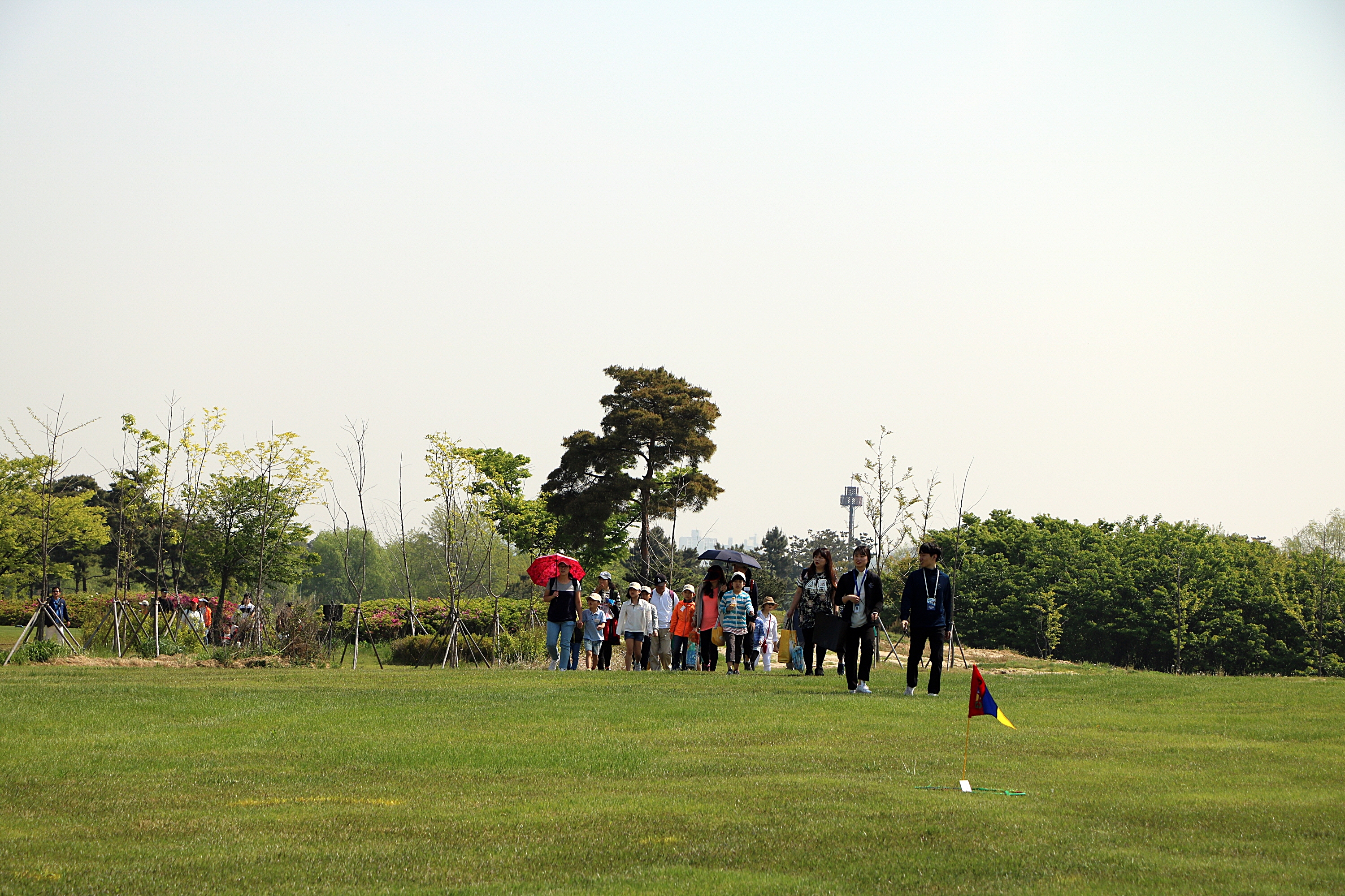 단체로 버스를 타고 온 뒤 질서정연하게 교육장으로 이동하고 있는 모습