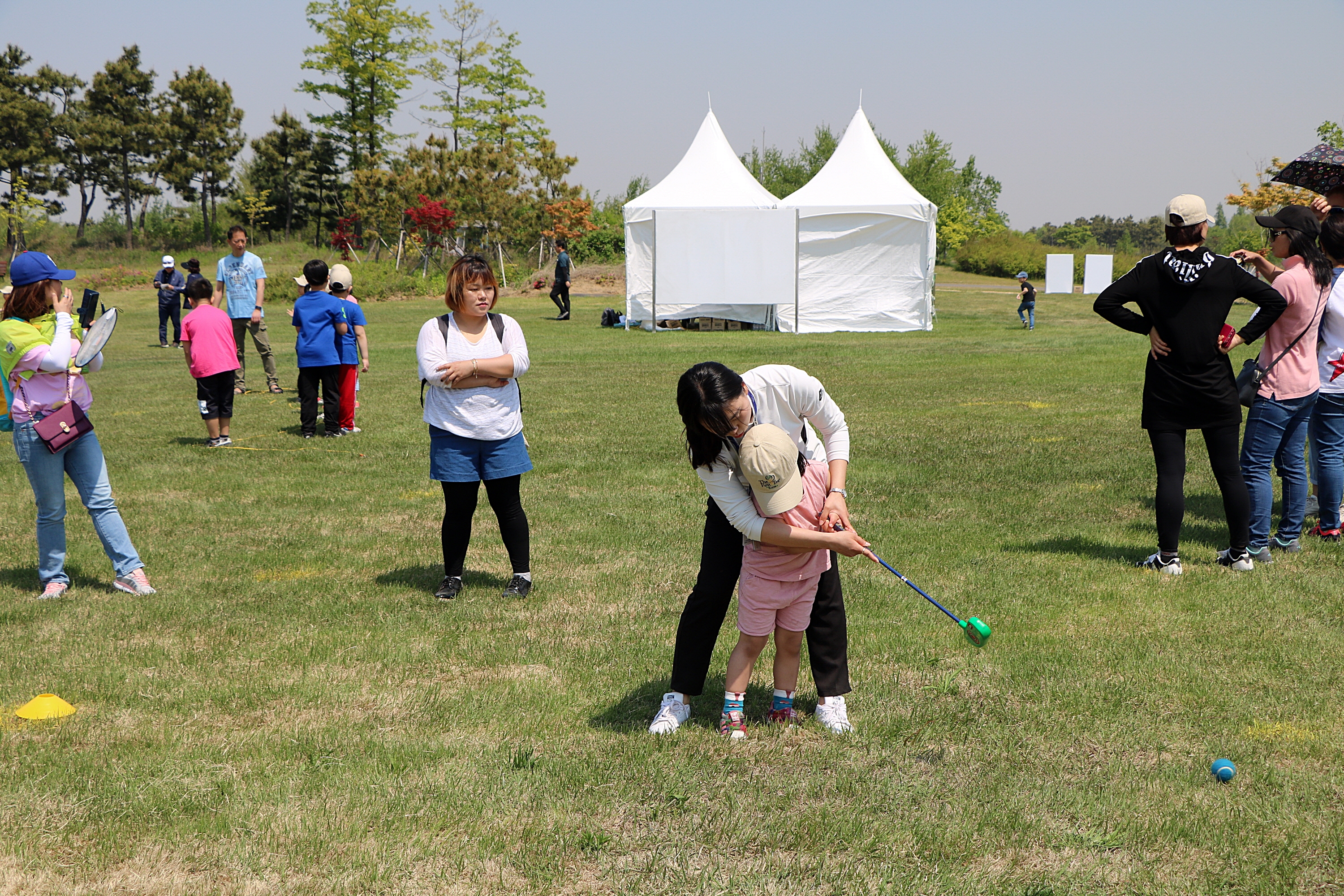 퍼팅에 대해 1:1 레슨을 해주고 있는 코치