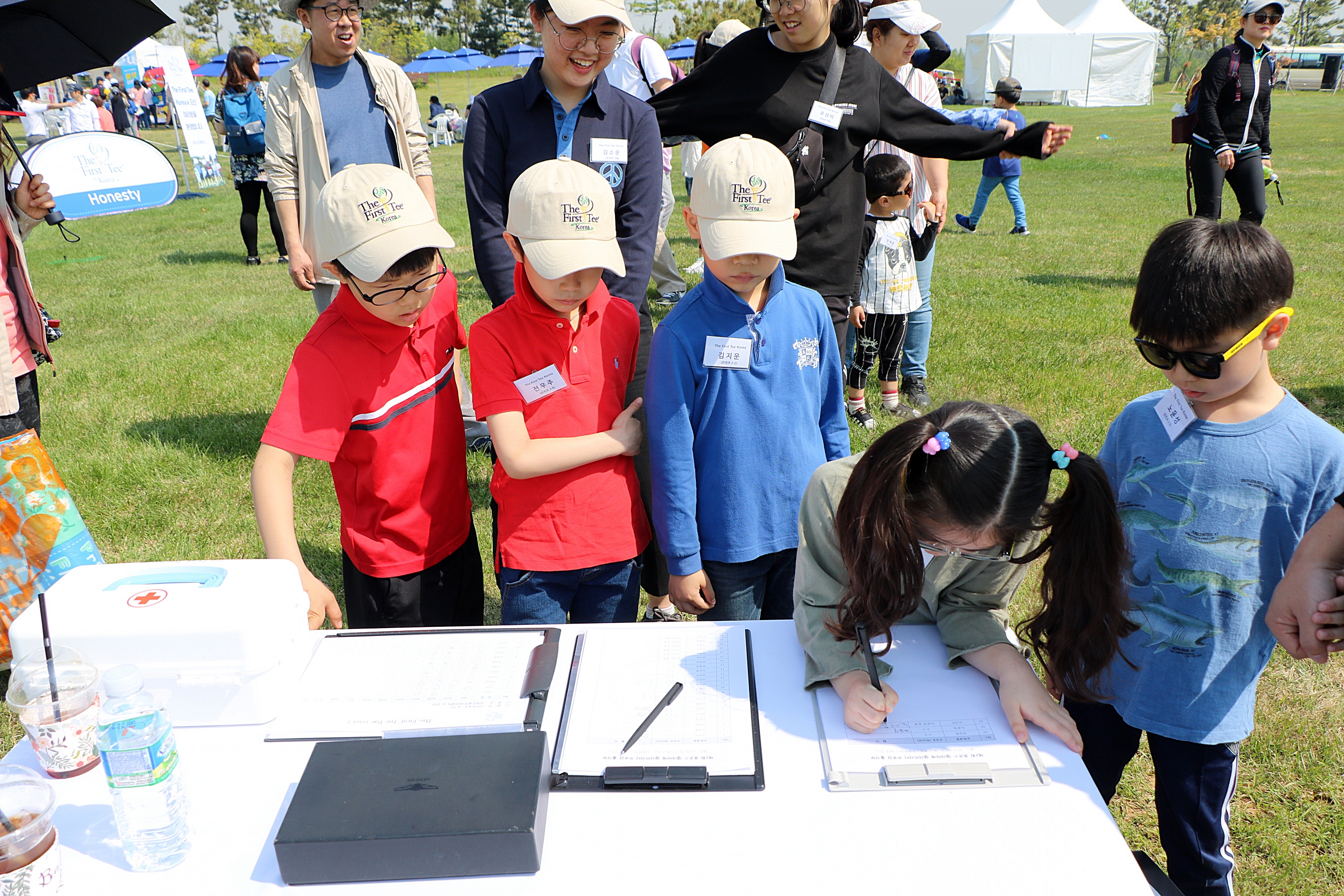 질서정연하게 차례대로 출석확인을 하는 아이들