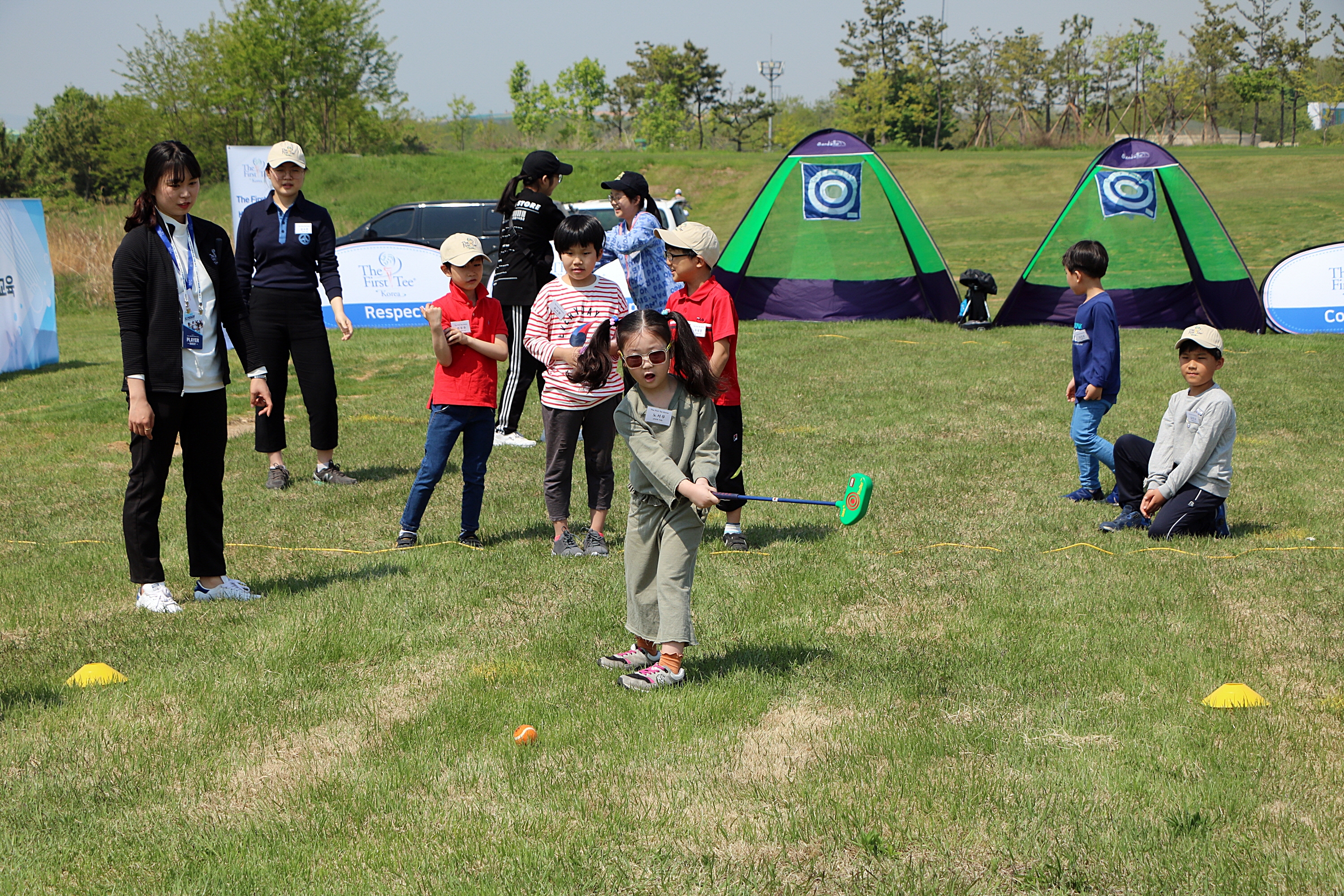생애 첫 골프라운드 재미에 푹빠져 있는 아이들