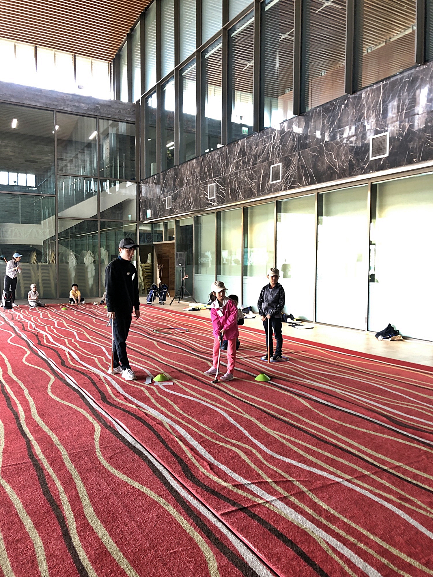 코치님이 지켜보는 가운데 배운대로 퍼트실습을 하고 있는 모습