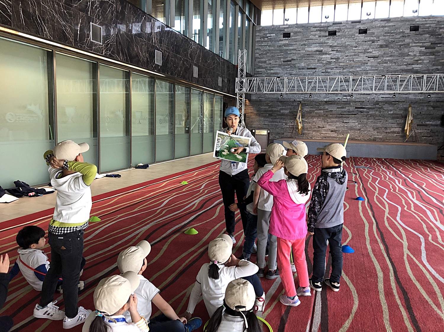 골프코스 내에서 지켜야 할 룰에 대해서 배우고 있는 아이들