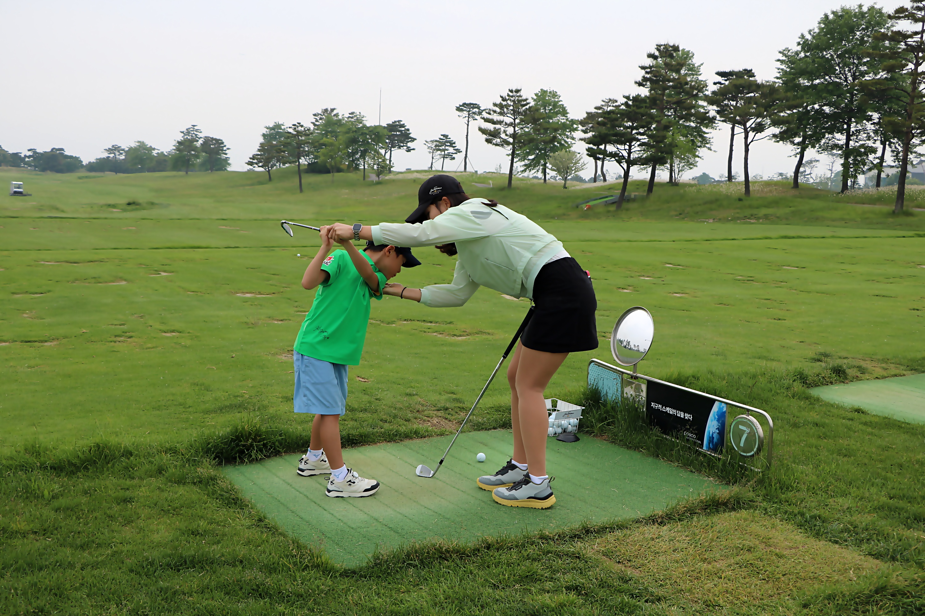 톱스윙 자세를 교정해주고 계신 서유정 프로님