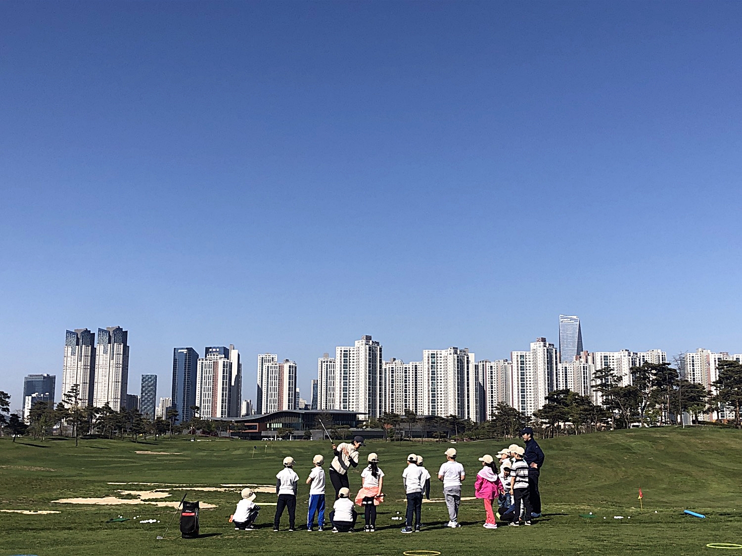 아이들에게 직접 시범을 보이며 스윙메카니즘을 쉽게 이해할 수 있도록 도와주는 코치들