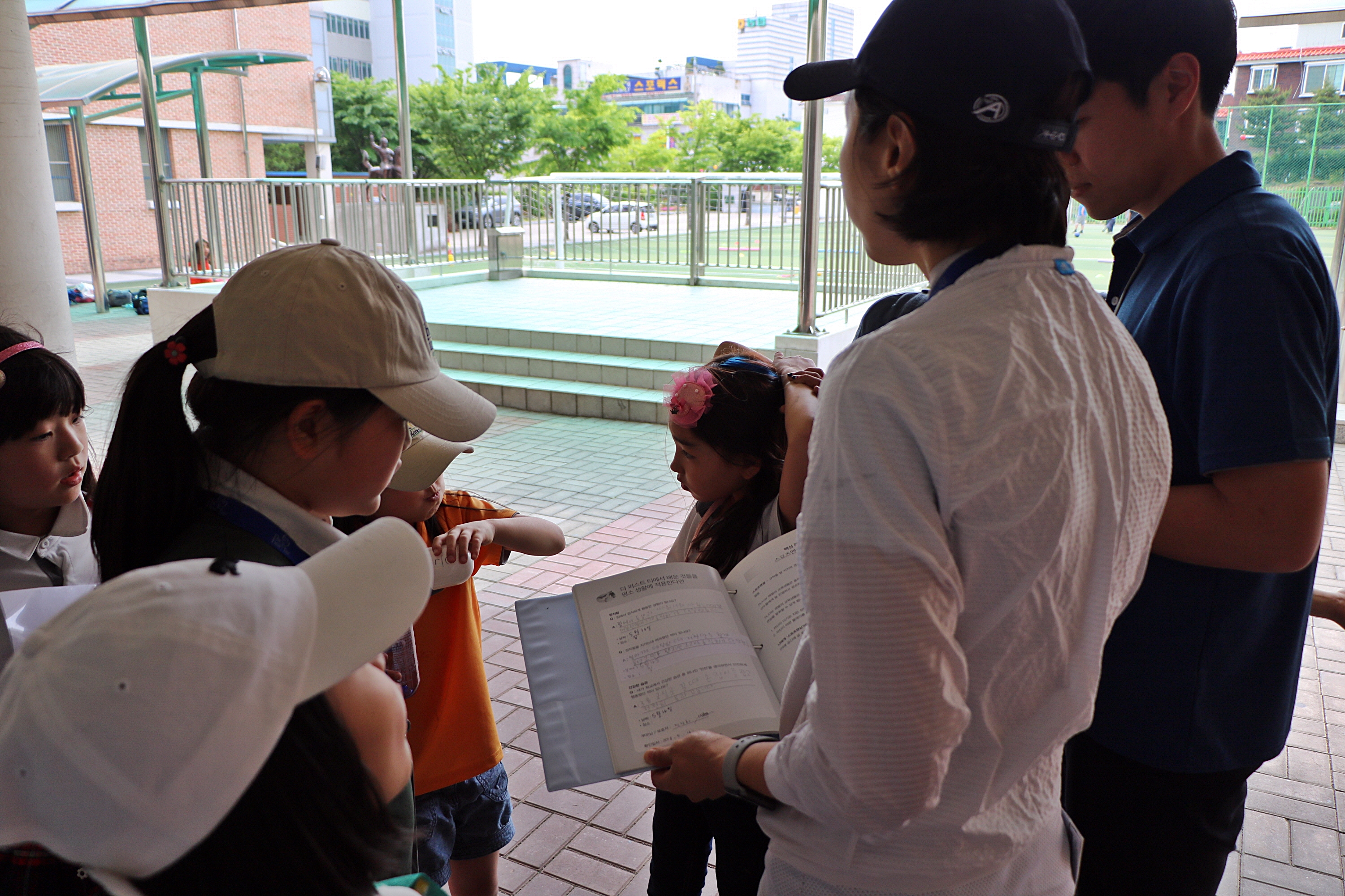 지난주 내준 과제를 성실히 작성해 온 한 교육생의 야디지북을 보면서 칭찬해 주는 모습