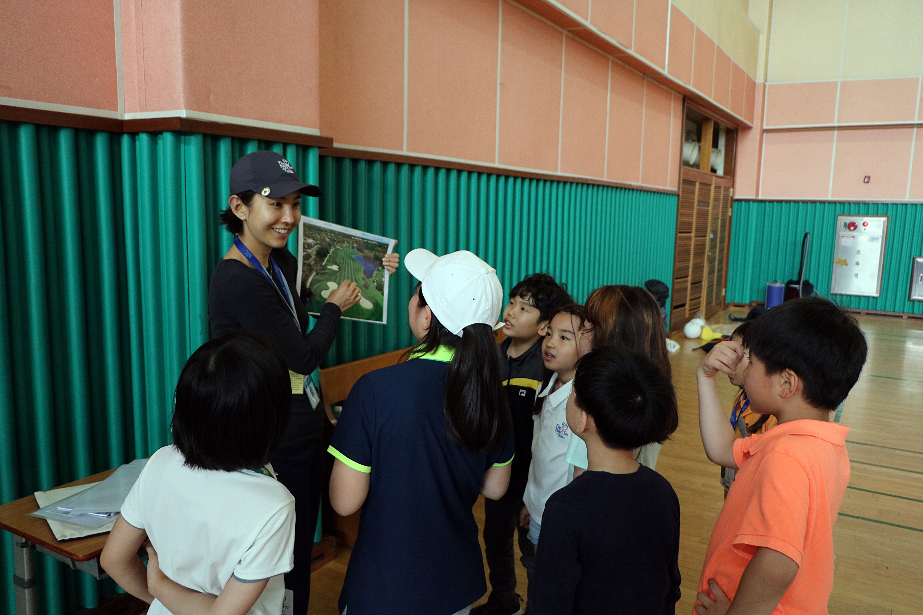 골프코스 명칭에 대해 퀴즈를 내며 복습하고 있는 모습
