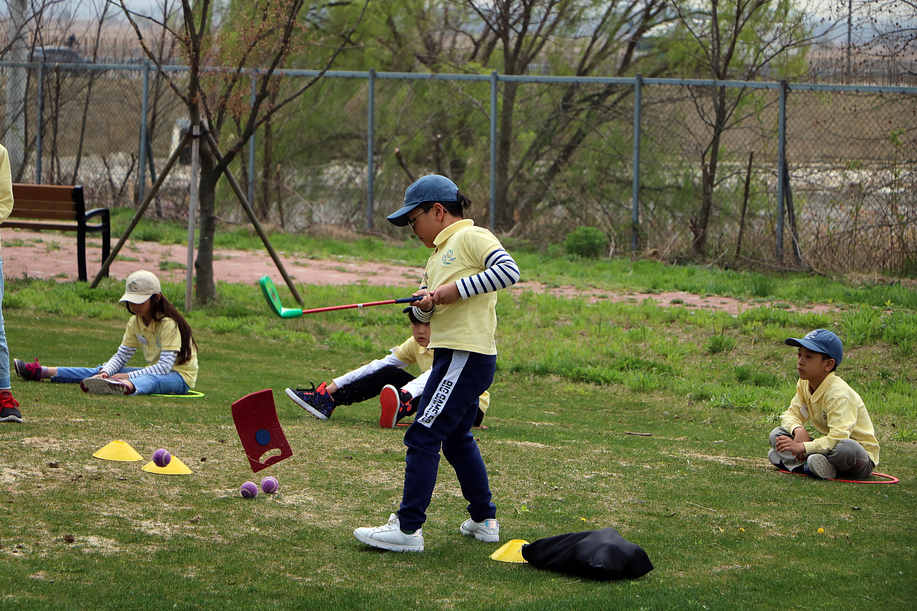 가끔 실수로 뒤땅을 치기도 하지만 잔디 보호를 위해 런처패드를 사용하고 있다.