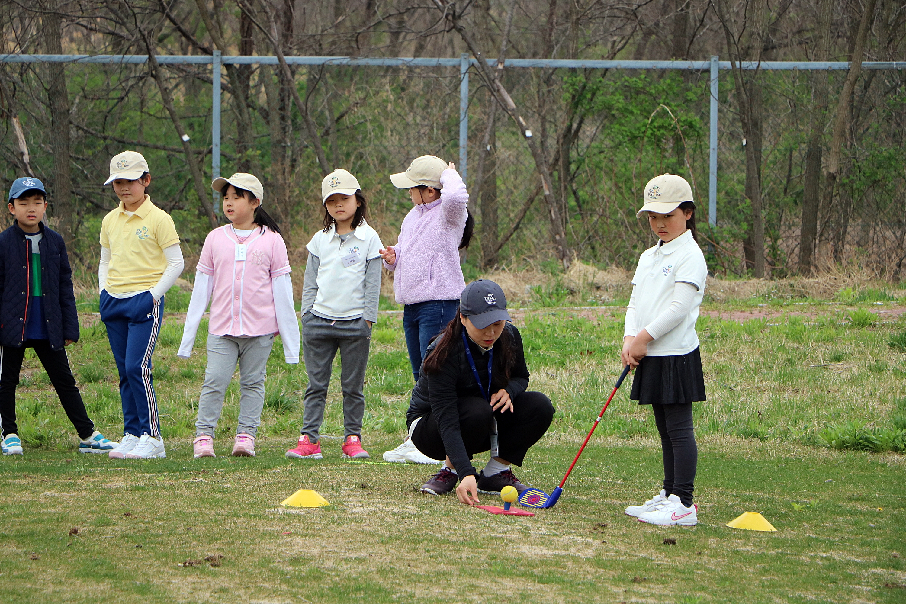 올바르게 공을 세팅하는 방법에 대해서 설명하고 있는 모습