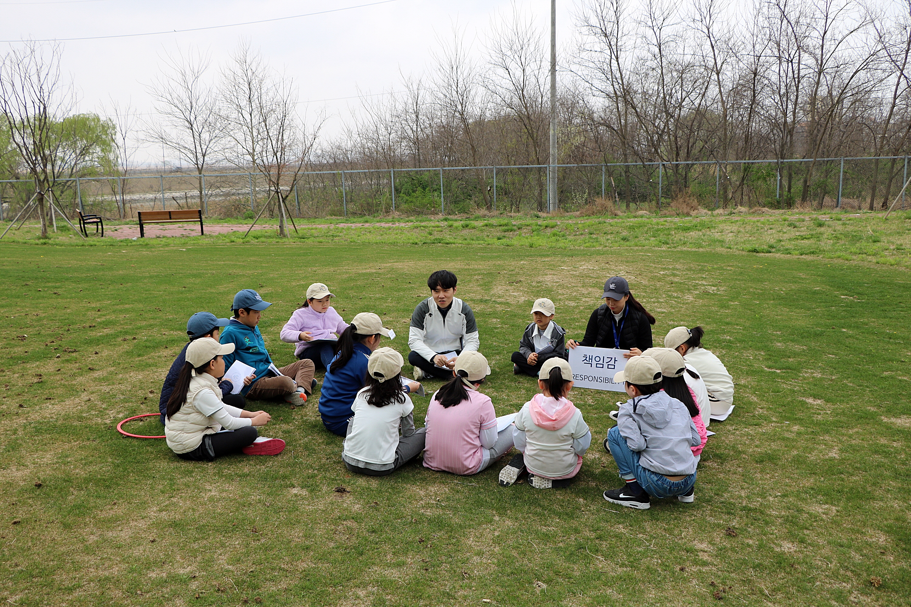 골프할 때 지켜야 할 책임감에 대해서 설명해 주고 있는 모습