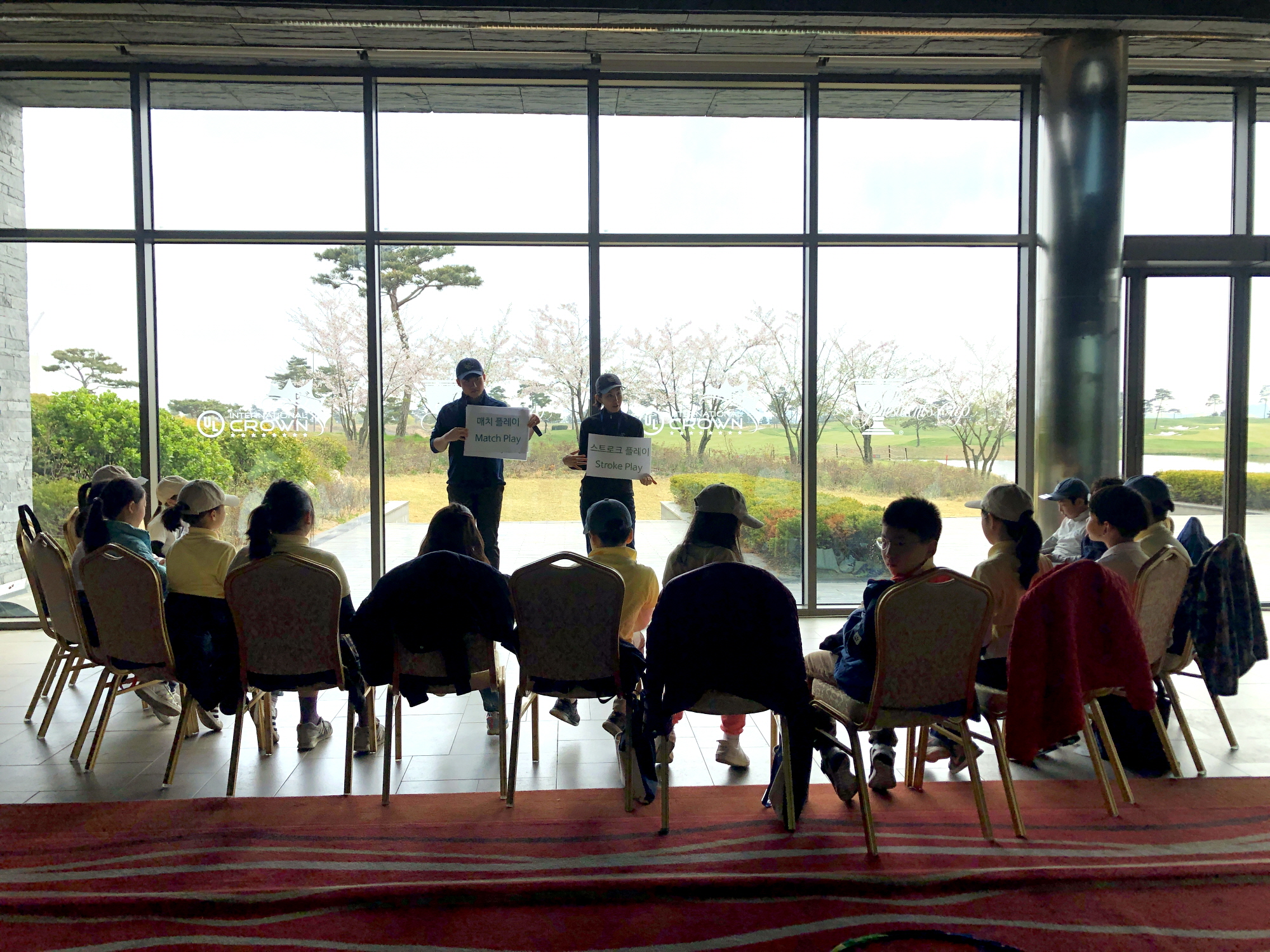 Match Play와 Stroke Play에 대해 배우고 있는 교육생들