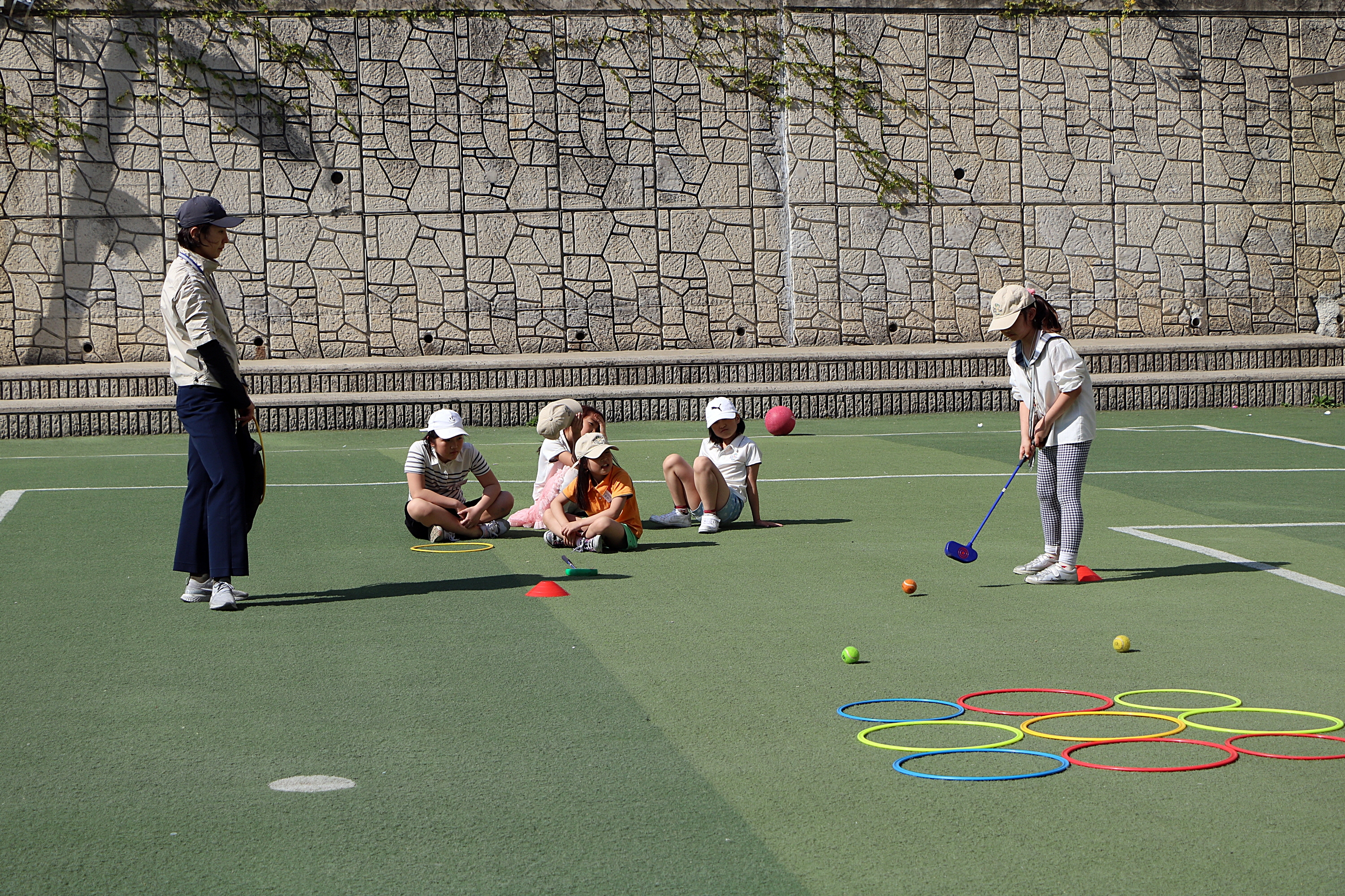 양팀으로 나뉘어 퍼팅 시합을 하고 있는 모습
