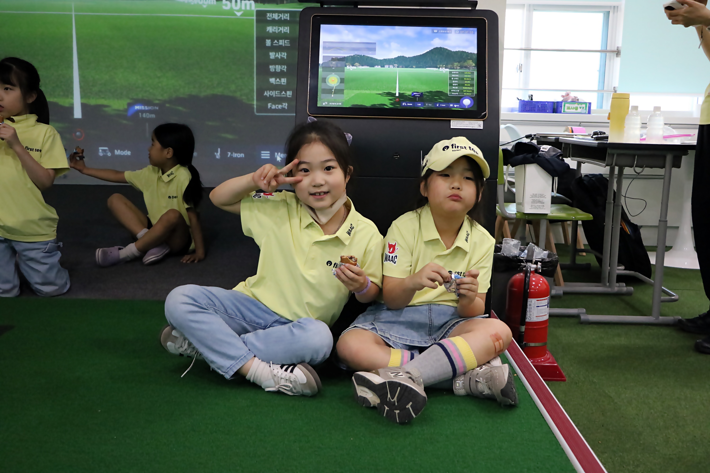 휴식시간에 코치님께서 주신 간식을 맛있게 먹고 있는 아이들