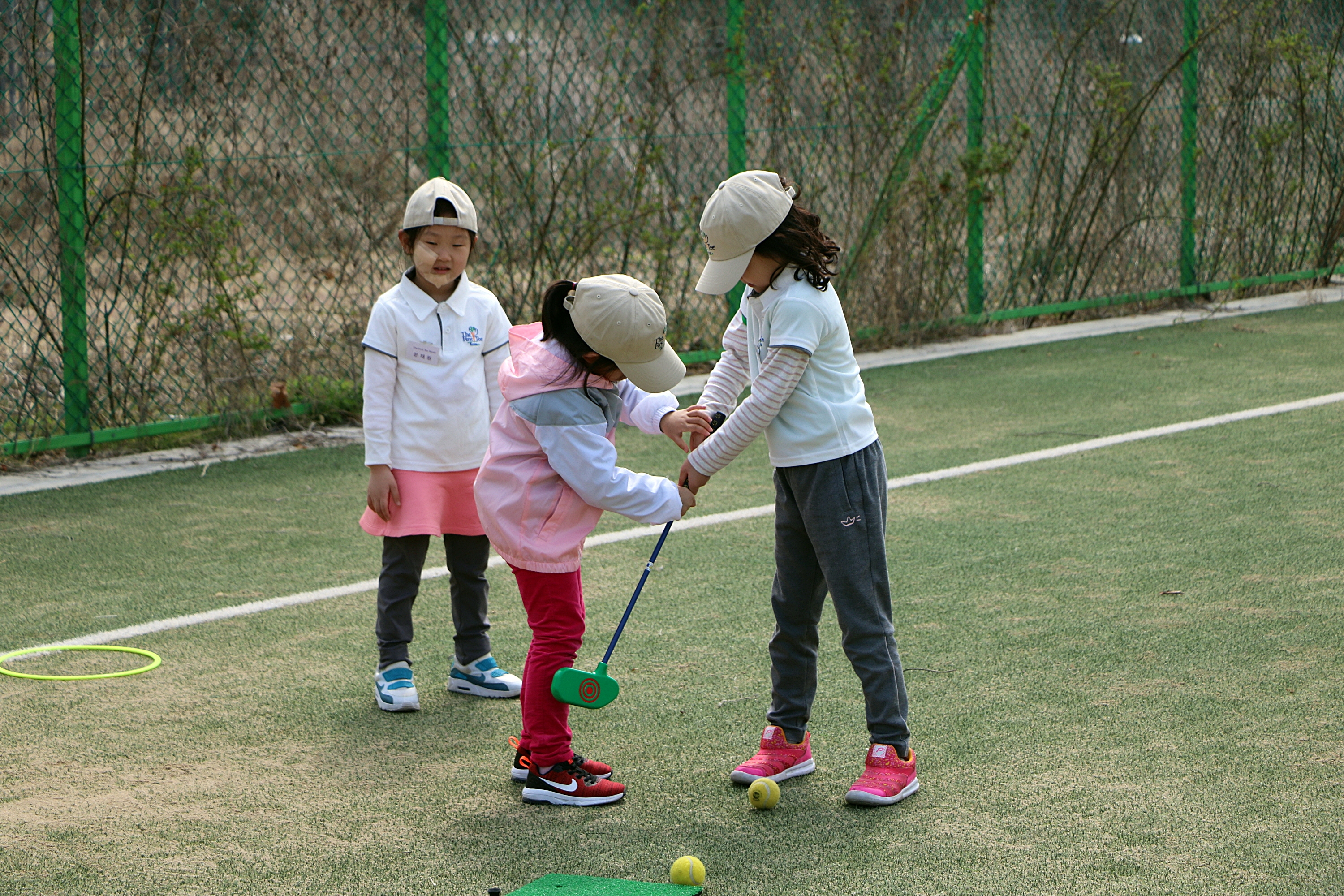 코치님이 다른 조를 지도하시느라 안계시더라도 서로 잘못된 자세를 교정해 주고 있는 아이들