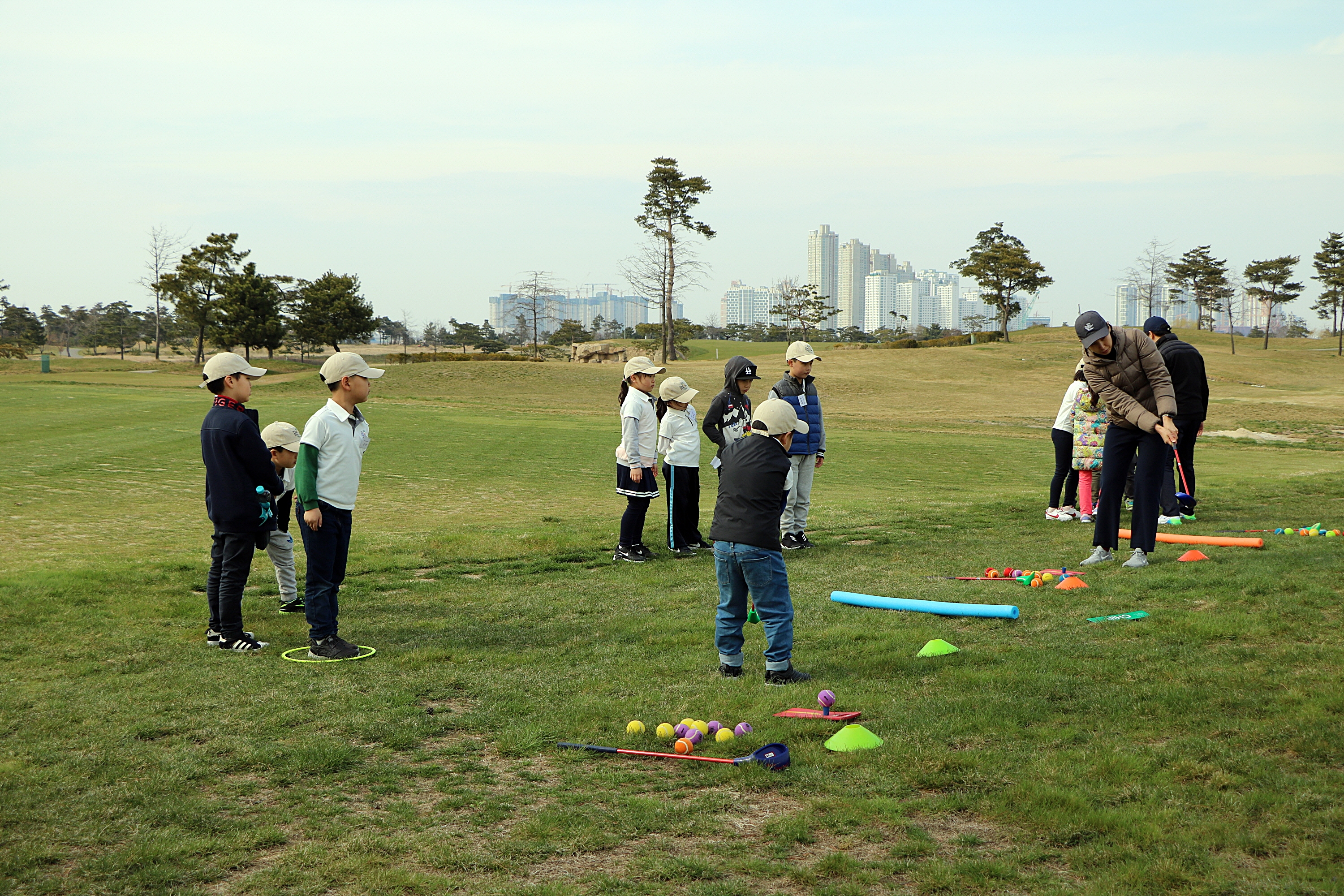 올바른 칩샷 동작에 대해 시범을 보여주고 있는 코치