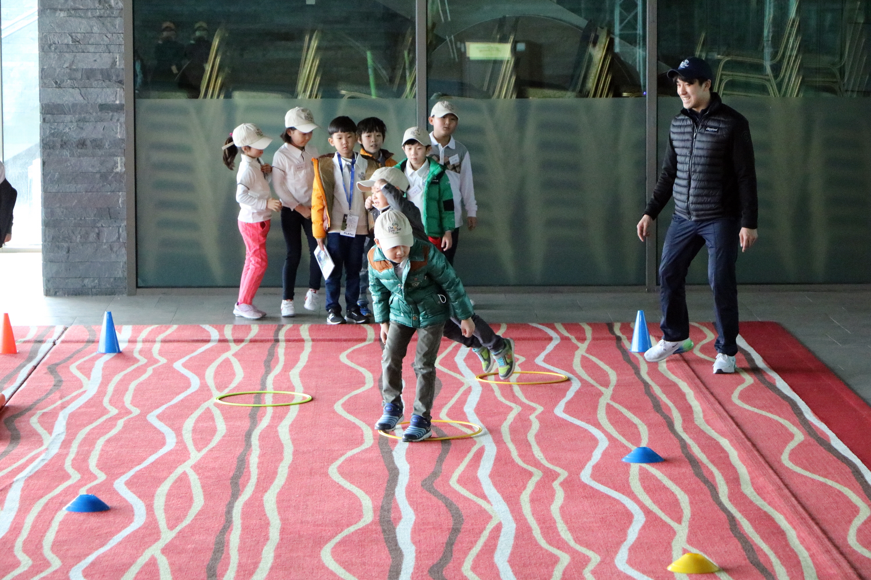인간용수철이 되어 하늘로 높이 뛰어오르는 아이들