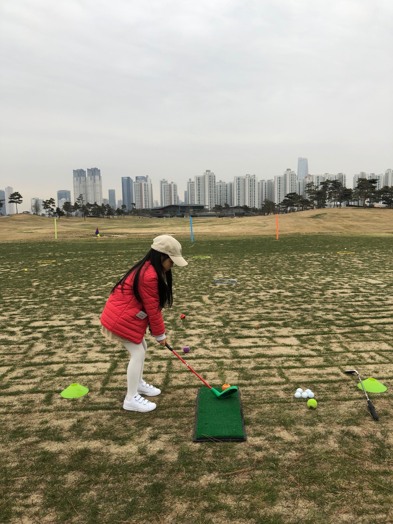 골프의 기본 _ 스윙 준비를 하는 교육생의 모습
