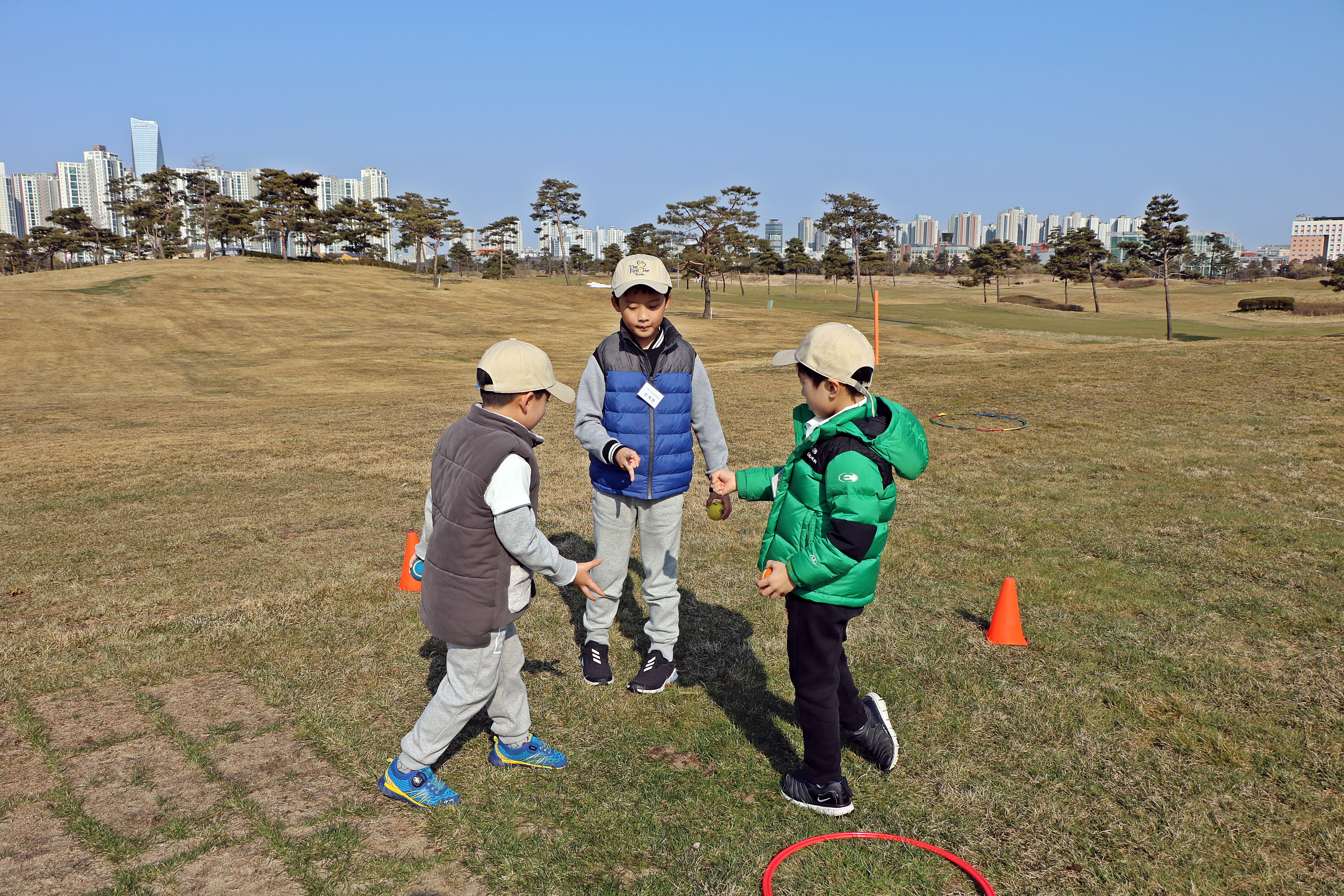가위, 바위, 보로 경기 순서를 정하는 아이들