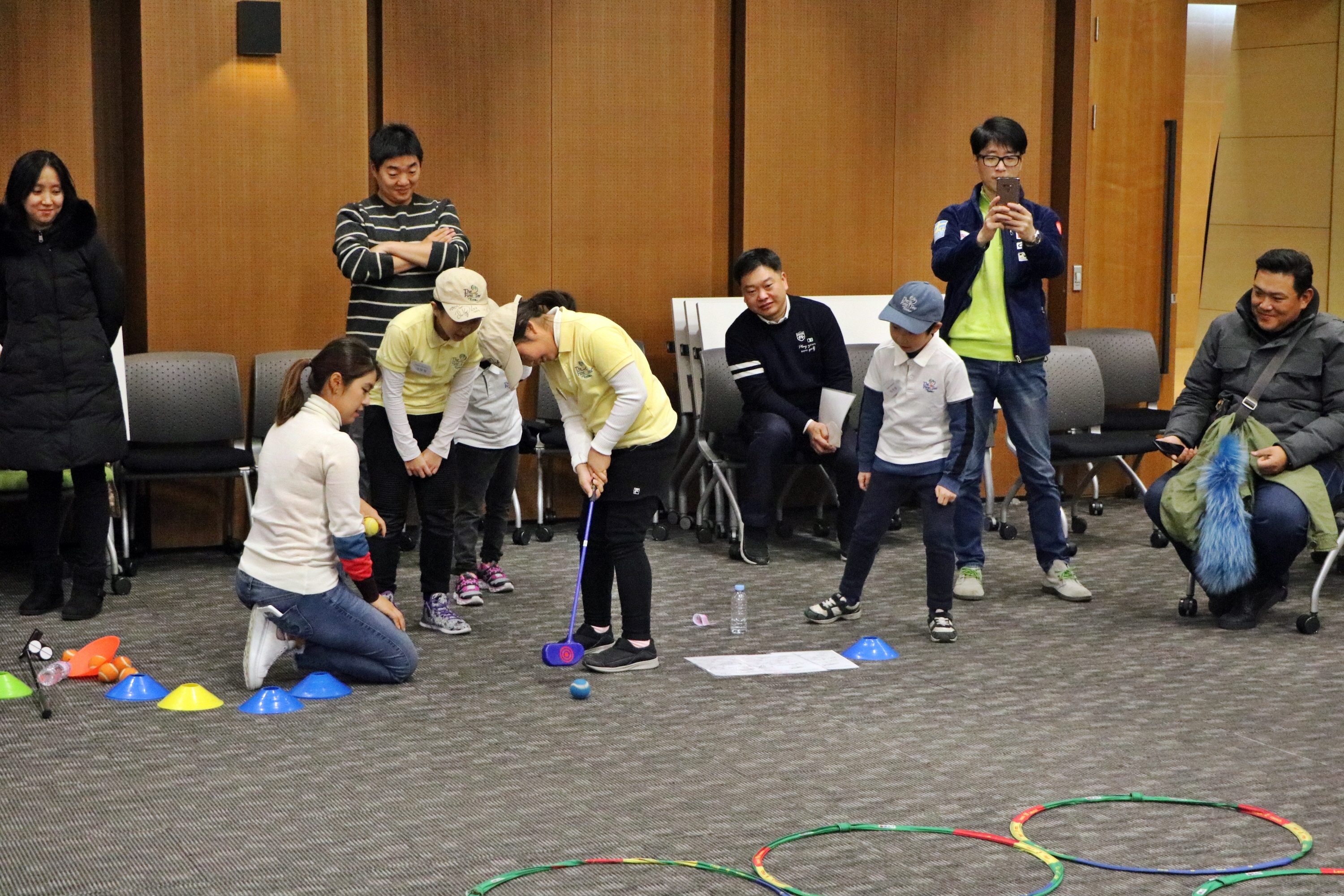 2006 도하 아시안게임 금메달리스트인 최혜용 프로에게 직접 퍼팅 레슨을 받고 있는 아이들