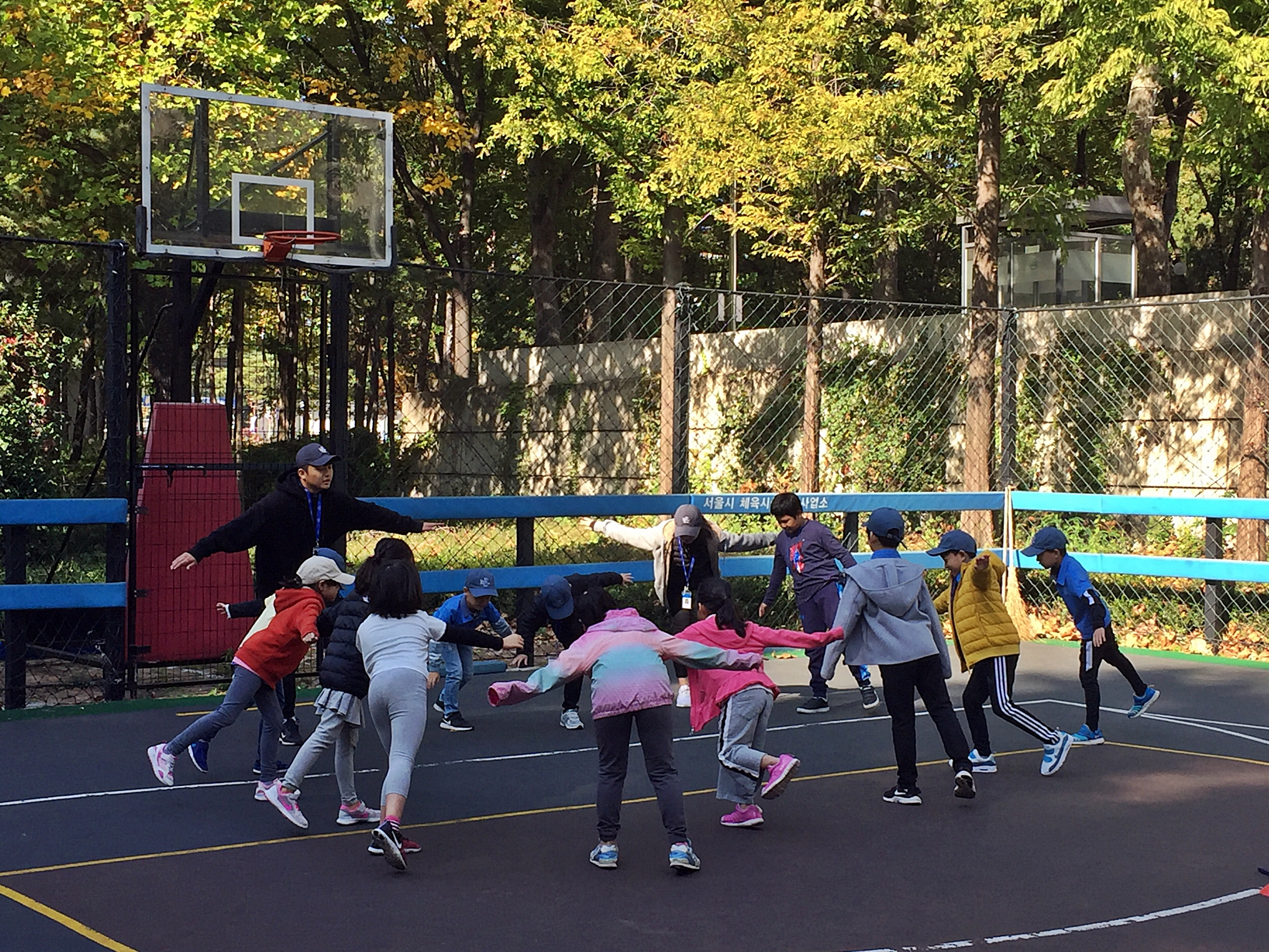 평형감각을 키우기 위해 한발서기를 하고 있는 모습
