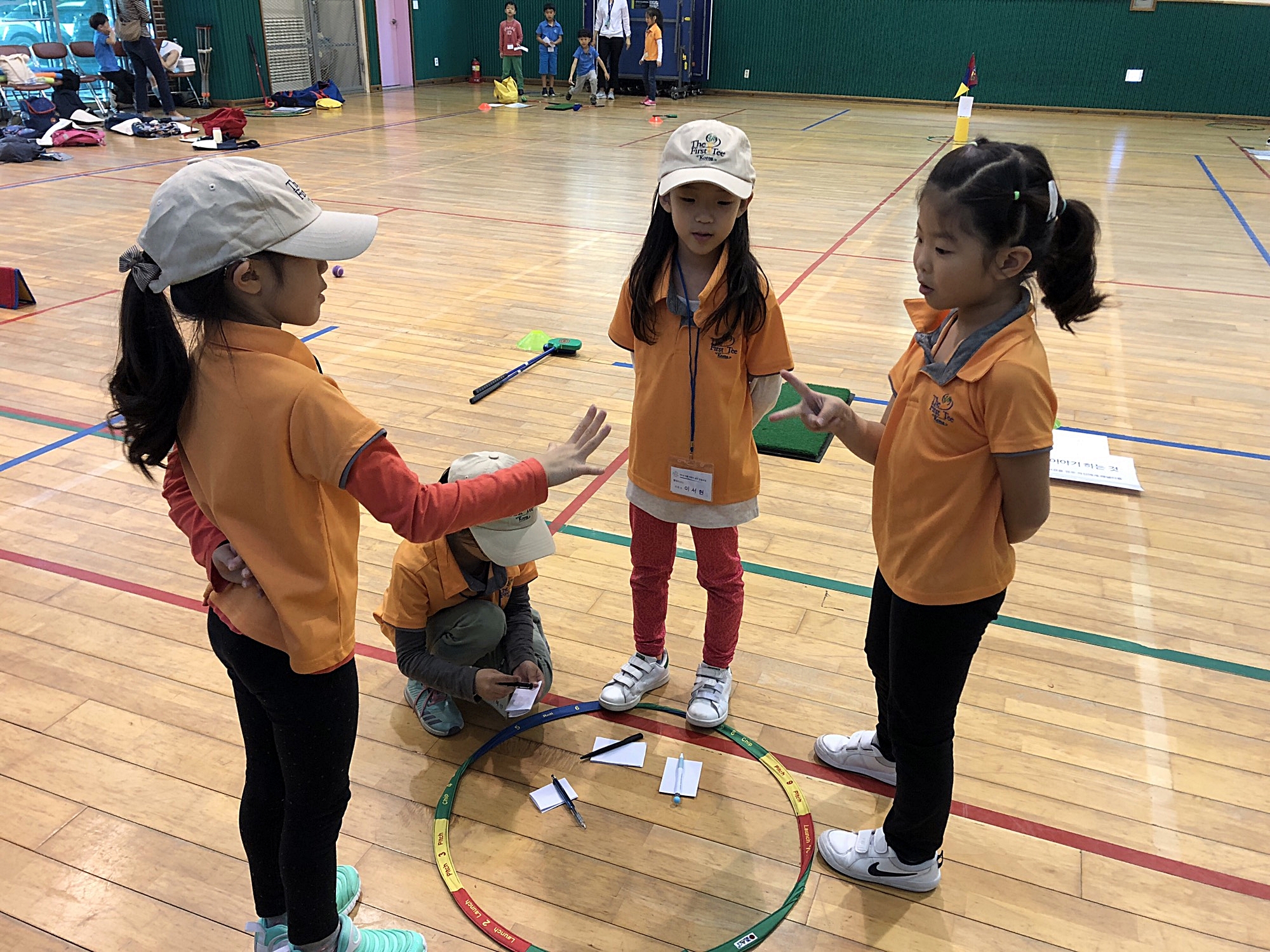 가위, 바위, 보로 티샷 순서를 정하고 있는 아이들