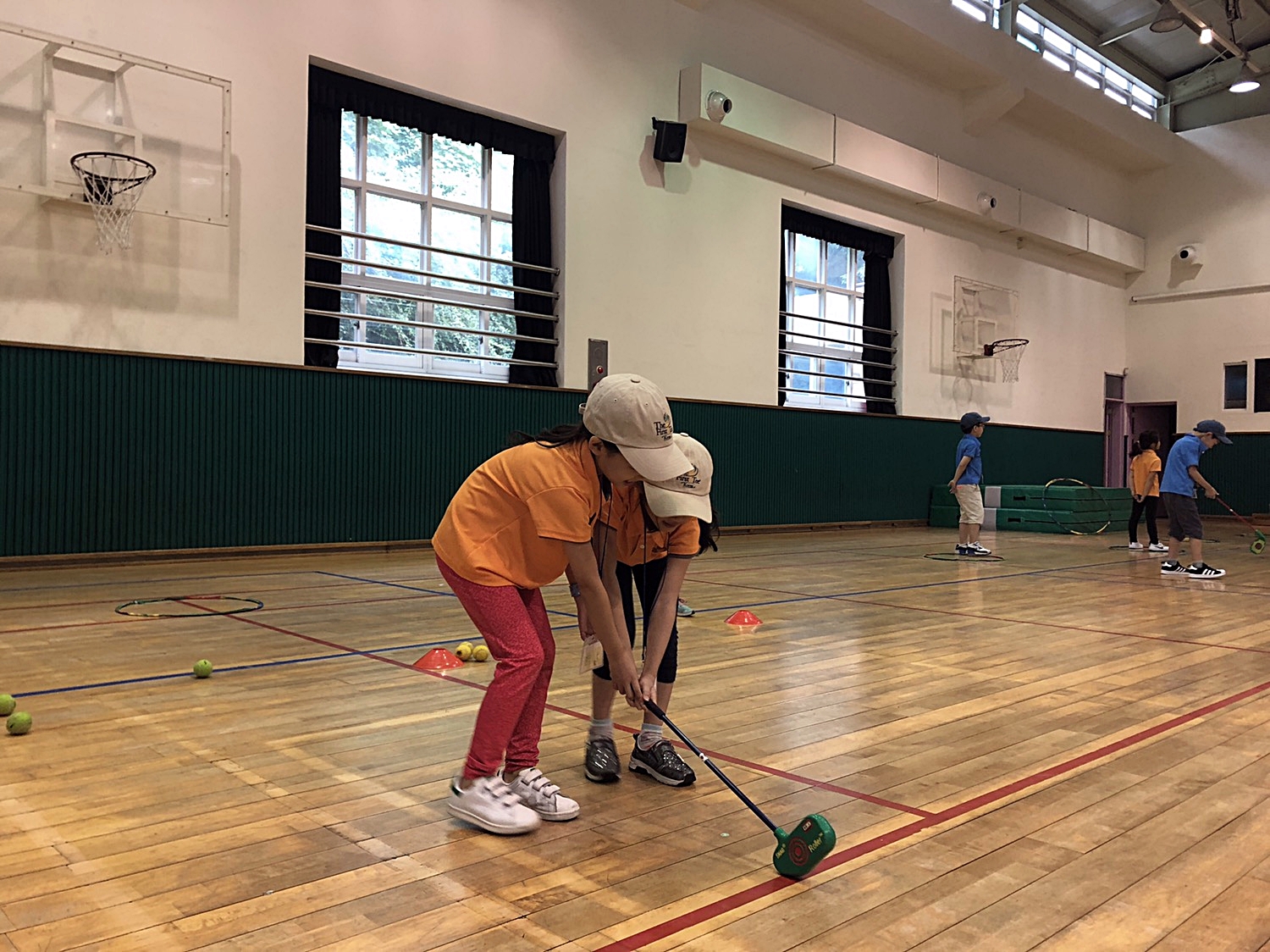 친구끼리 그립 잡는법을 서로 알려주고 있는 모습