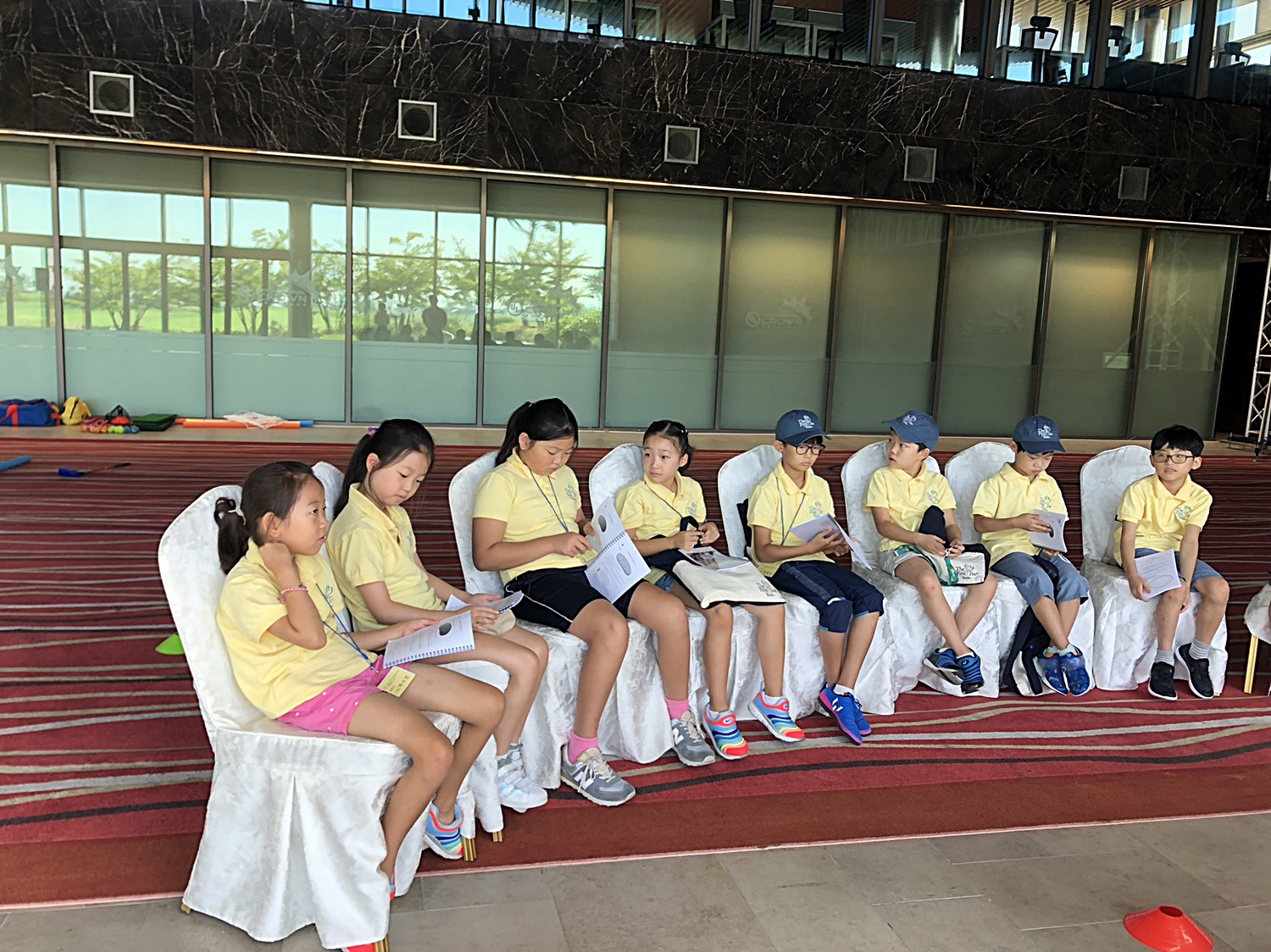 교육시작 전 조용히 본인 자리에 앉아서 코치님을 기다리고 있는 아이들