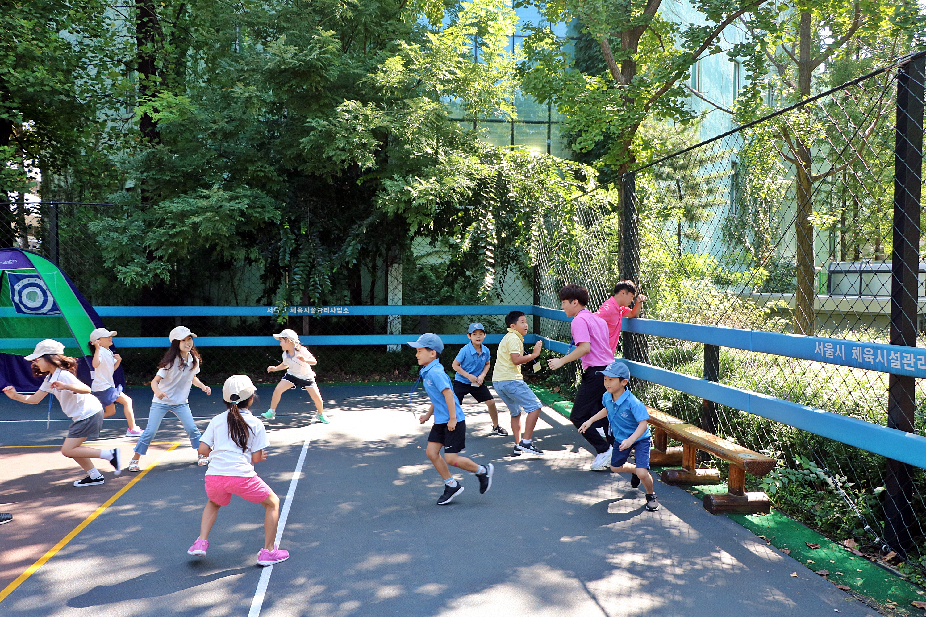 서로 친해지기 게임 도중 동기를 구하고 코치님에게 안잡히기 위해 본래 자리로 재빨리 되돌아가고 있는 아이들