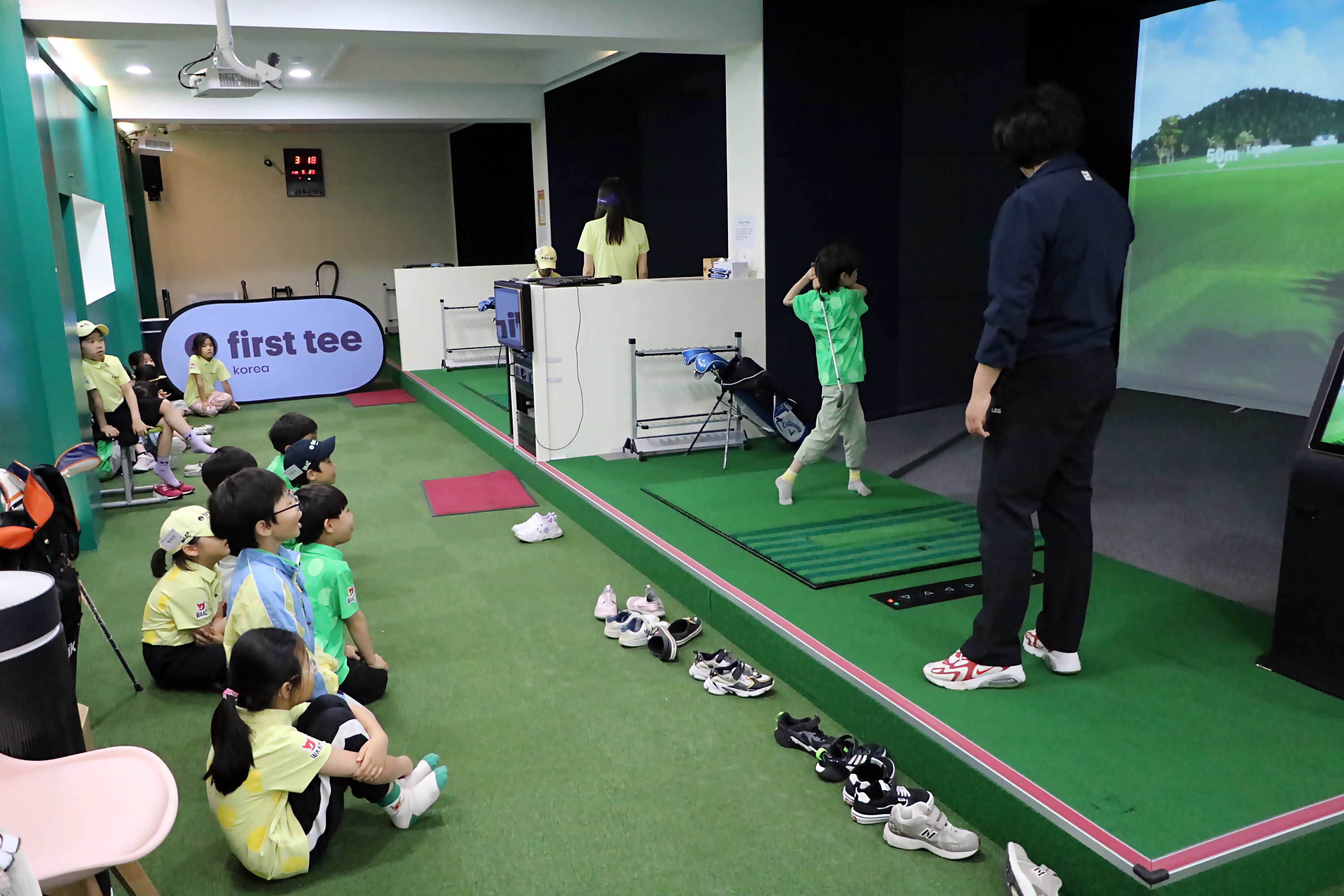 2개조로 나뉘어 골프실습을 하고 있는 모습