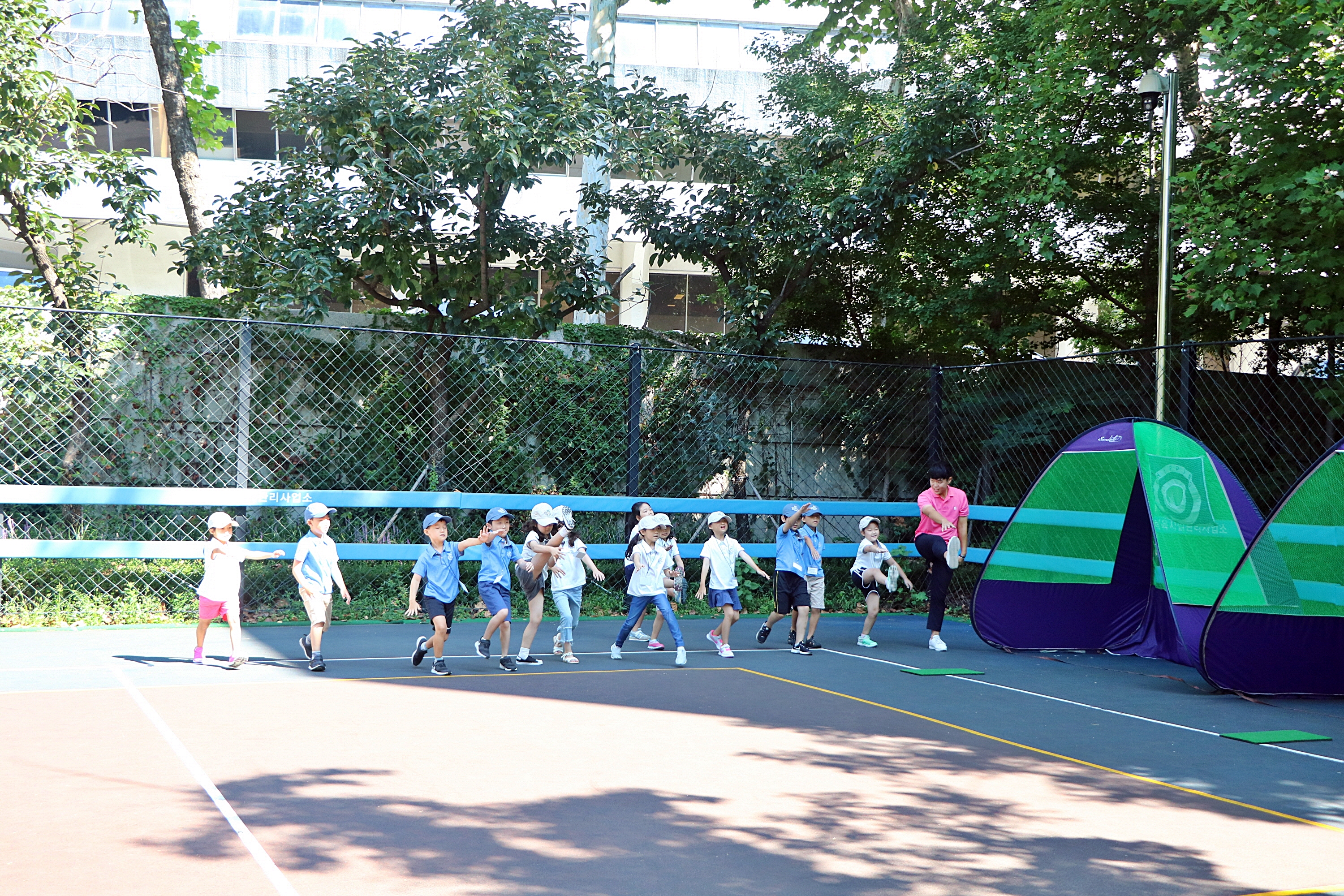 몬스터 워크를 하면서 몸을 푸는 아이들