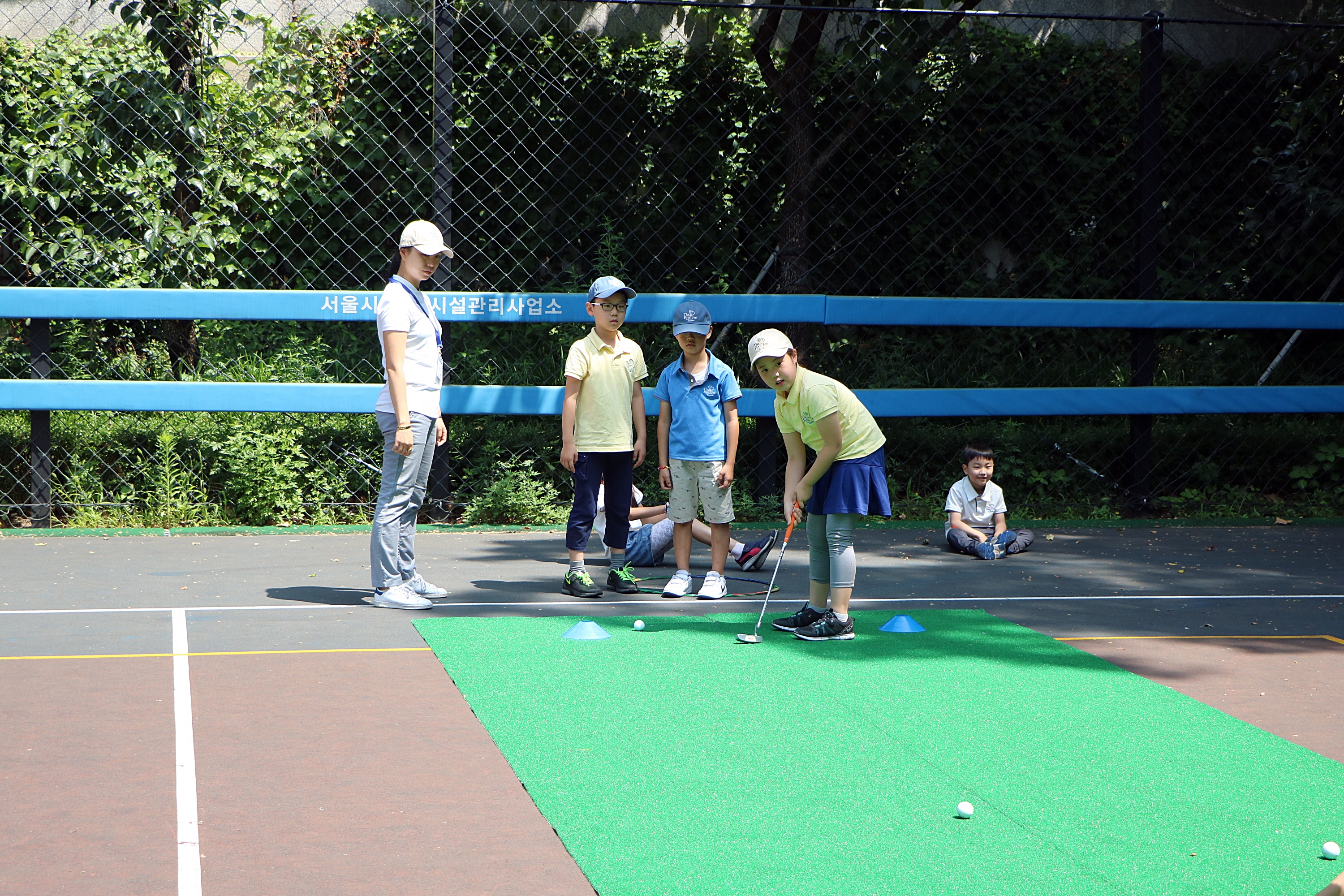 메이저 골프대회에 출전한 프로골퍼 못지 않게 신중하게 퍼트하고 있는 아이들