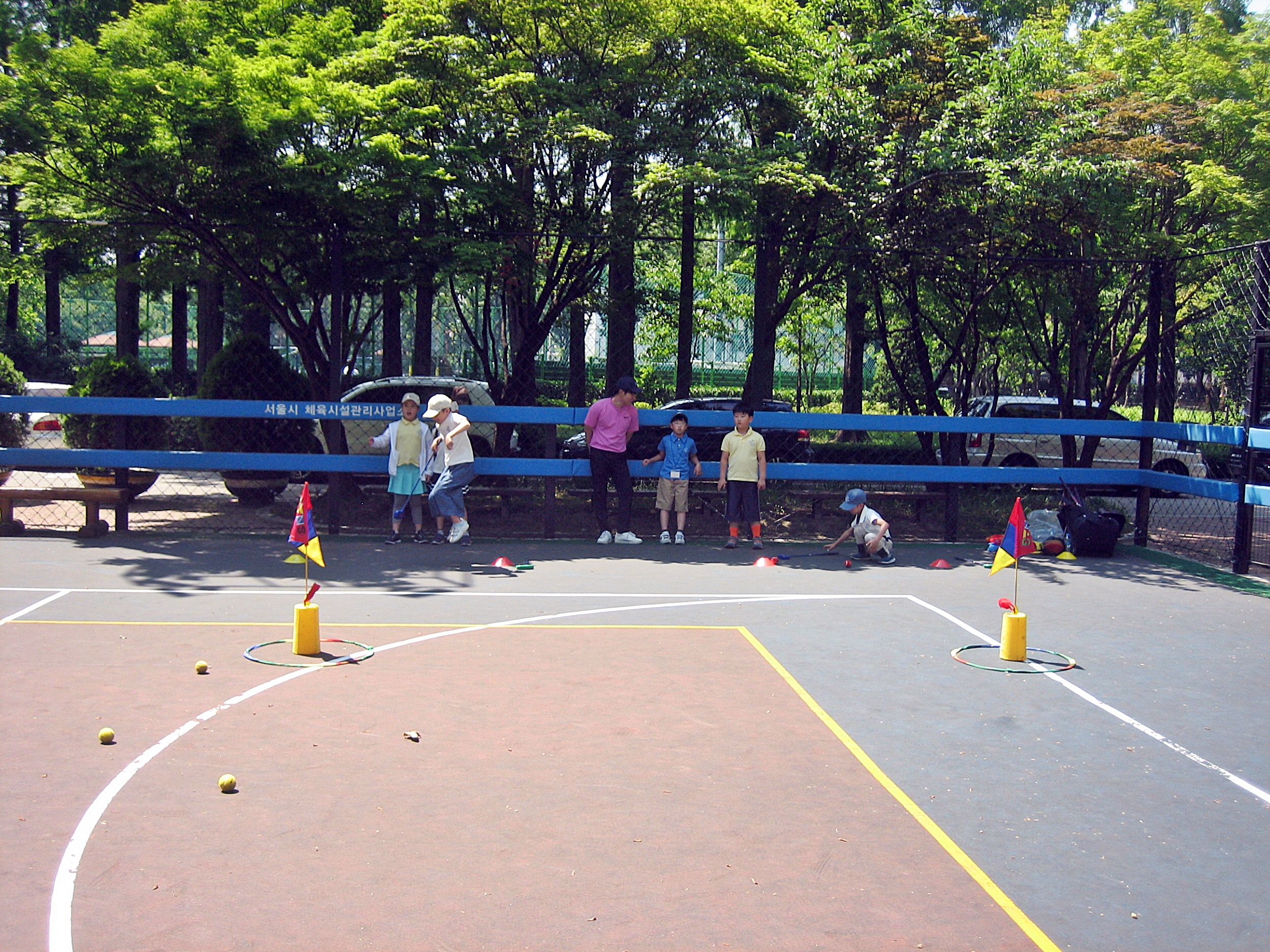 홀인된 자신의 볼을 바라보며 기뻐하고 있는 교육생