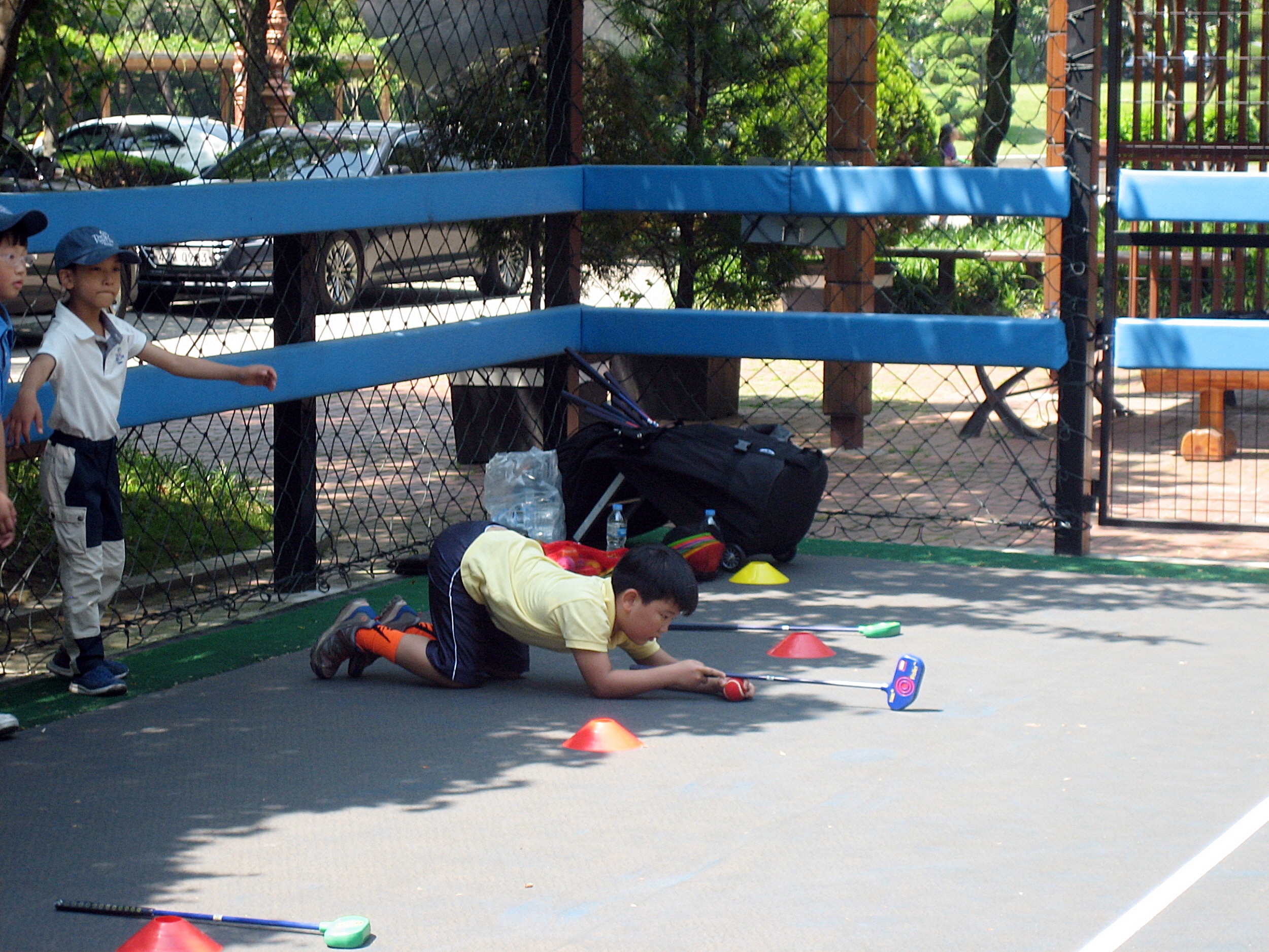 엎드려서까지 퍼트라인을 확인하며 열심히 교육에 임하고 있는 교육생