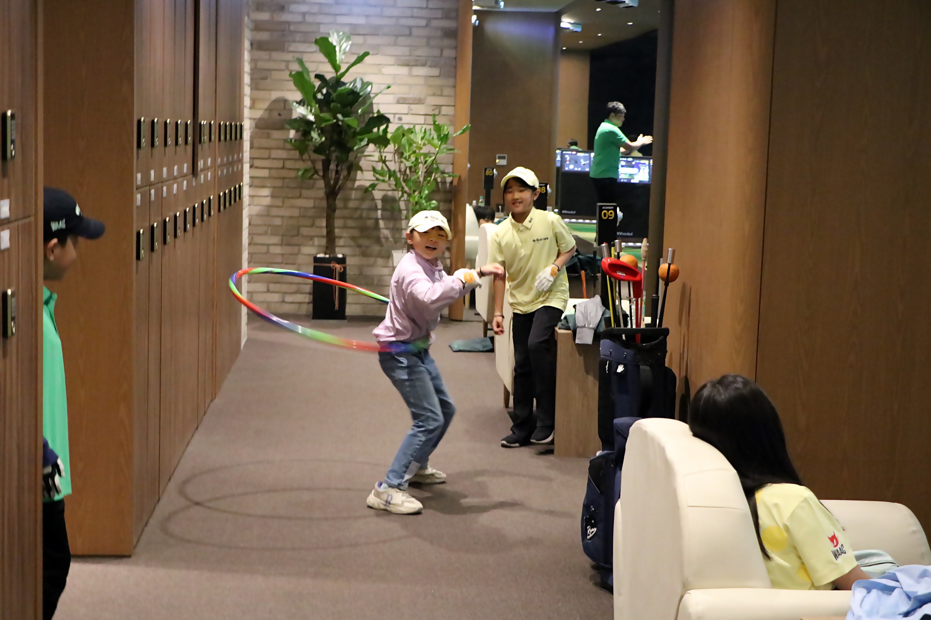 잠시 막간을 이용해 훌라후프 대결을 펼치고 있는 모습