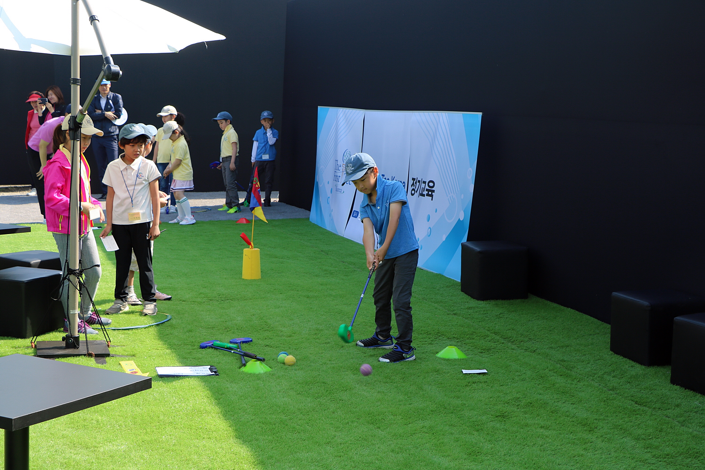 프로골프선수 못지 않게 신중하게 티샷을 하고 있는 교육생