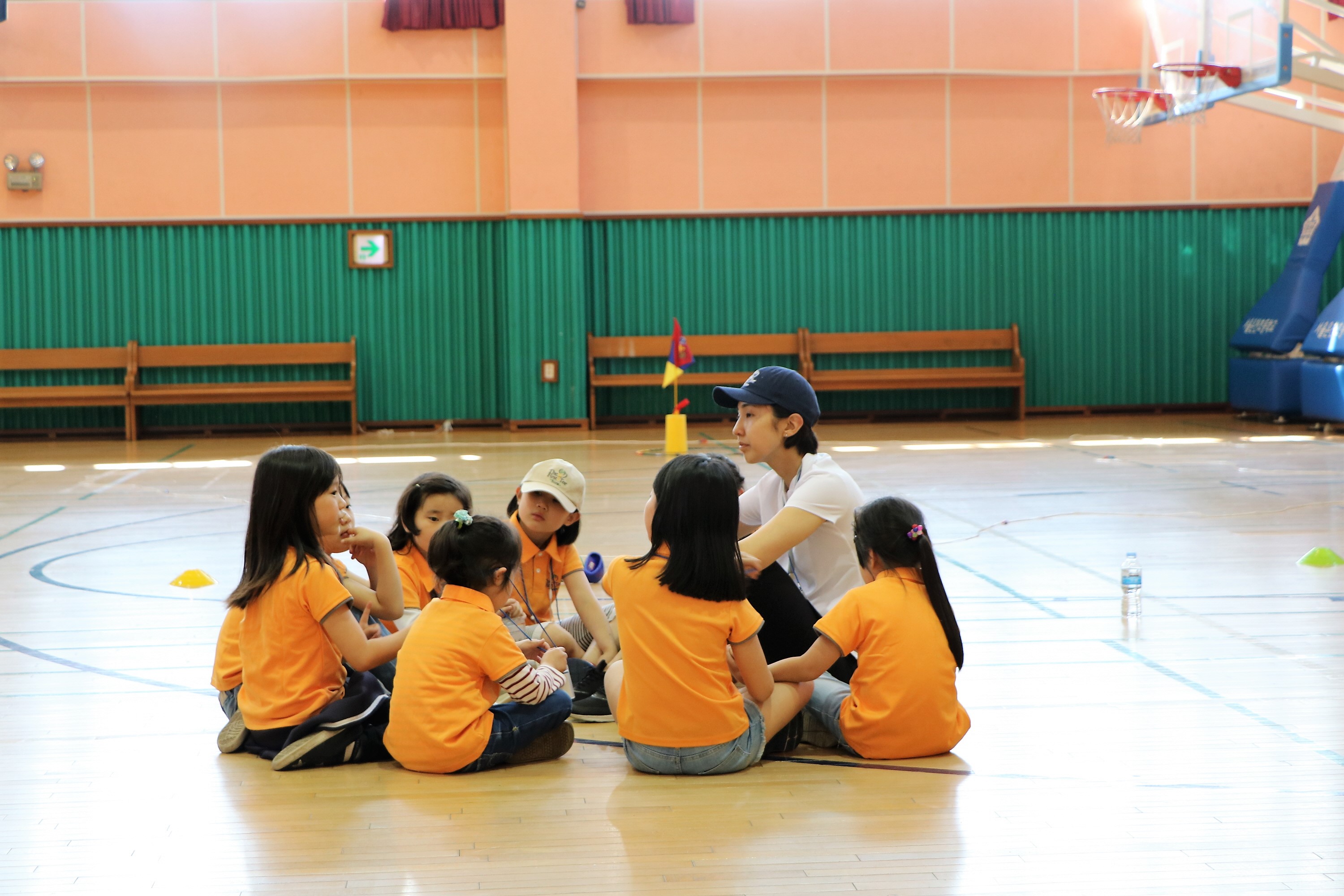 코치님과 즐겁게 대화를 나누며 9가지 핵심가지를 배우고 있는 아이들