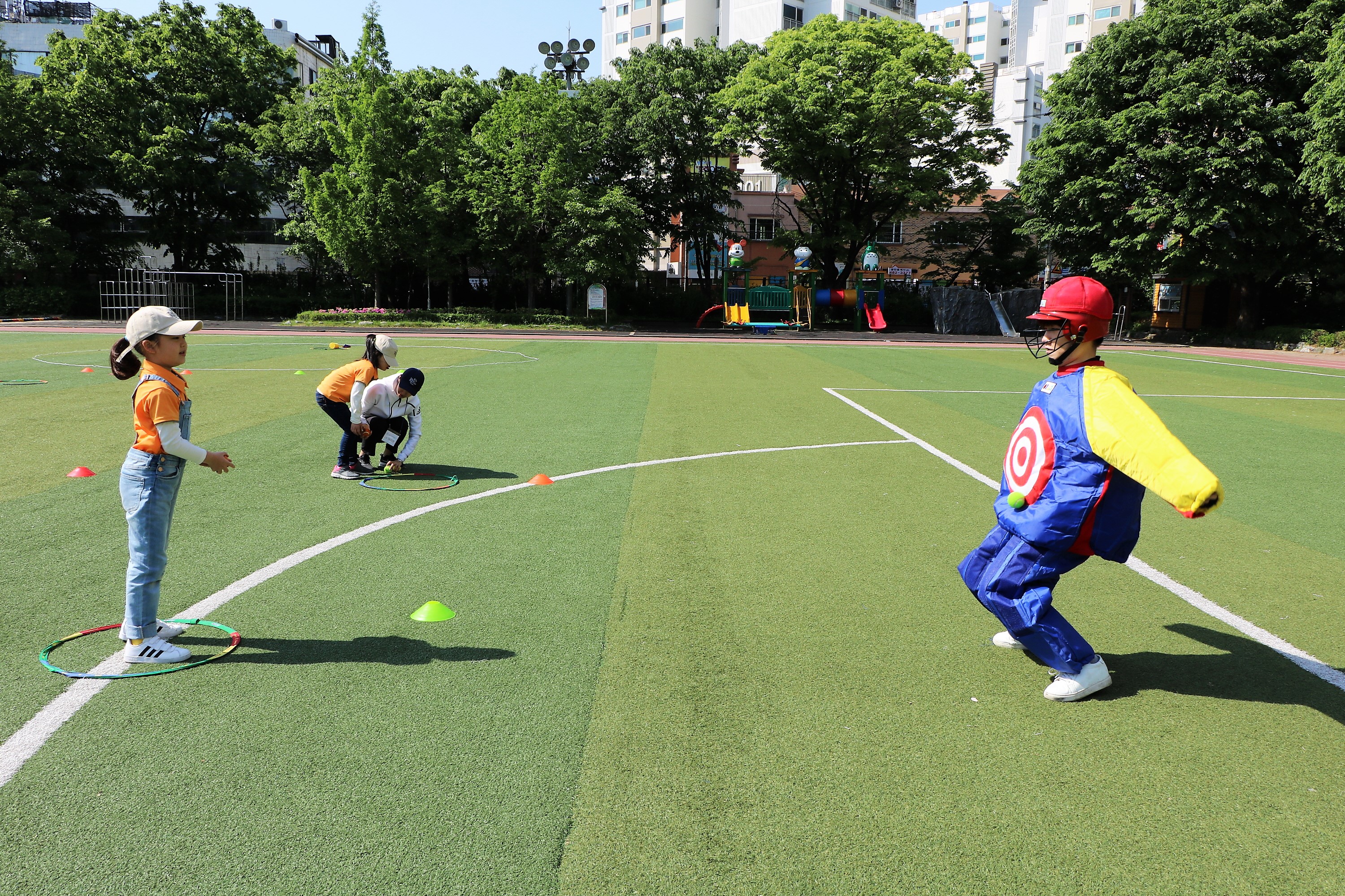 과녁 코치님! 제 공을 맞아서 아프지 않으시죠?
