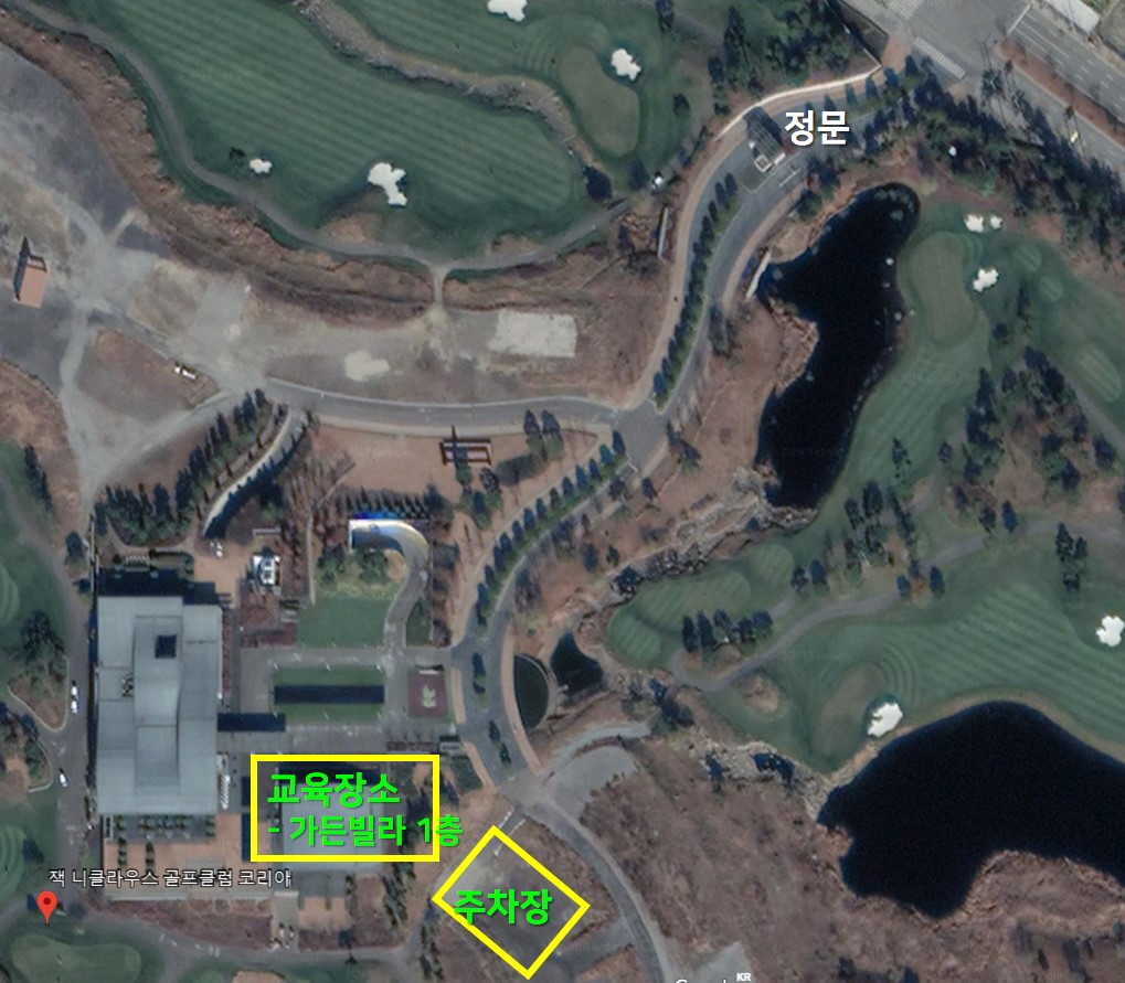 1. 집합장소 : 잭니클라우스골프클럽코리아 가든빌라 1층 (아래 사진 좌측 하단에 보이는 가장 큰 지붕 건물인 클럽하우스 좌측 건물)